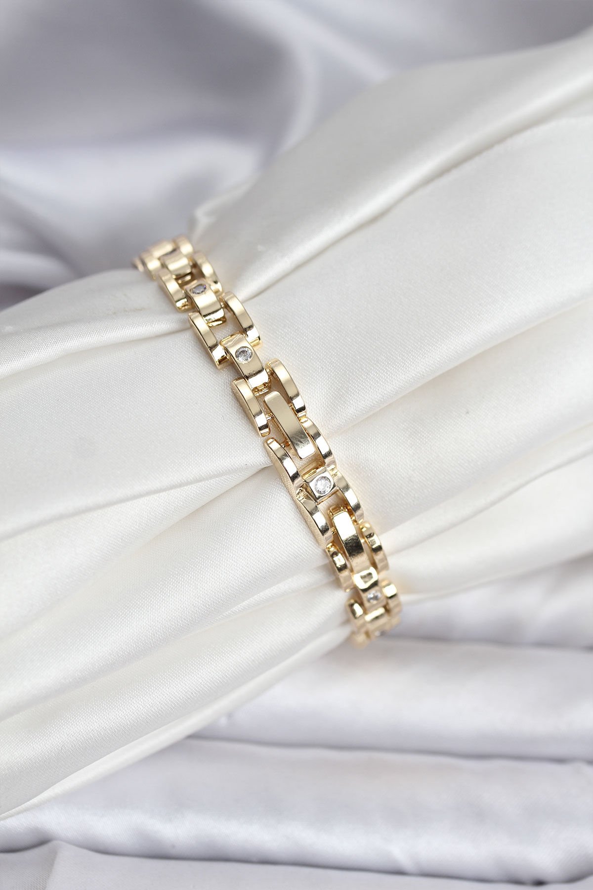 14K Gold Renk Kaplama Zirkon Taşlı CM Kadın Bileklik