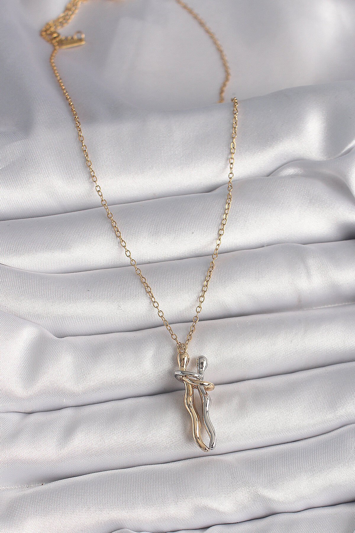 316L Çelik Gold Renk Zincir Renkli Sarılma Model Kadın Kolye e_BKO9765