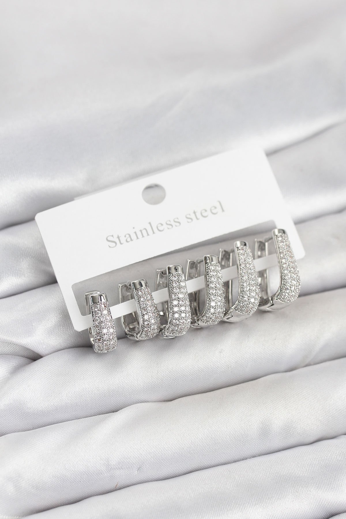 316L Çelik Gümüş Renk Zirkon Taşlı Damla Halka Küpe Seti