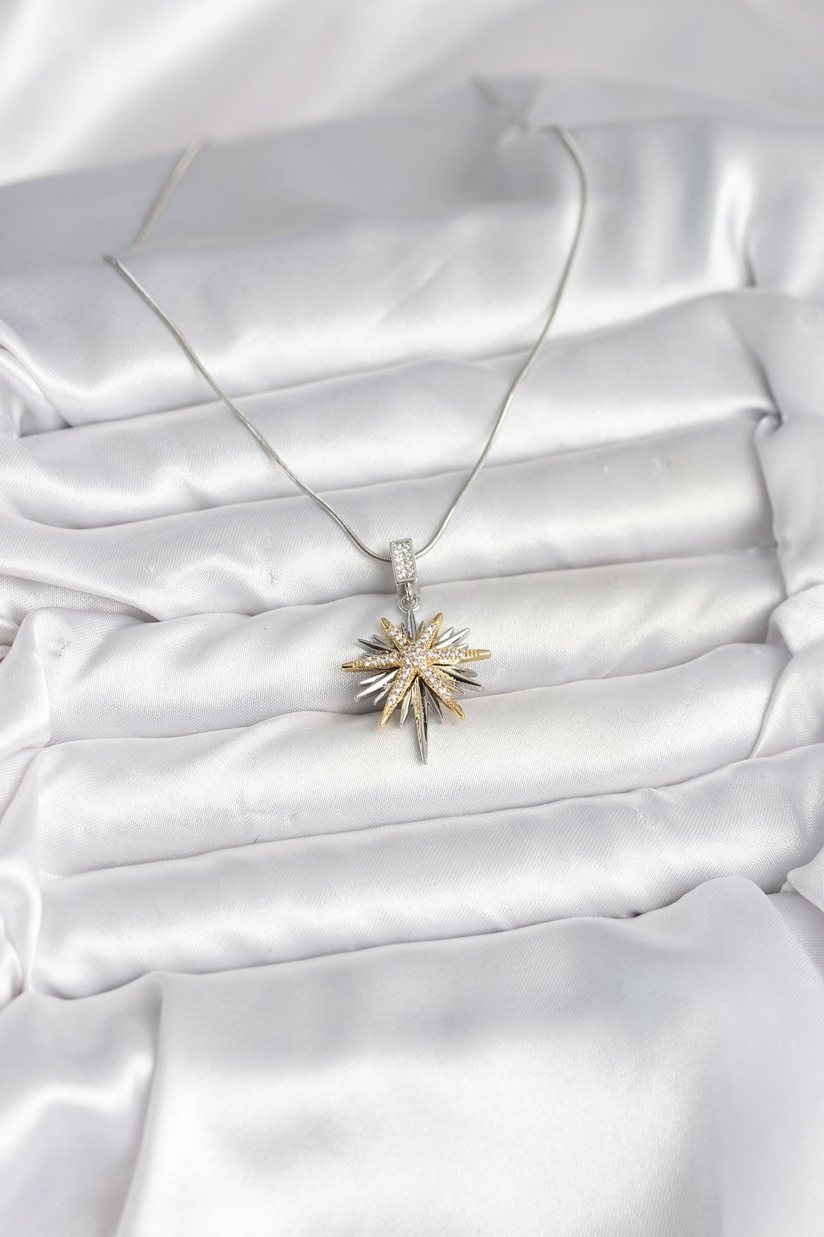 316L Çelik Zincir Gümüş Renk Kutup Yıldızı Model Kadın Kolye