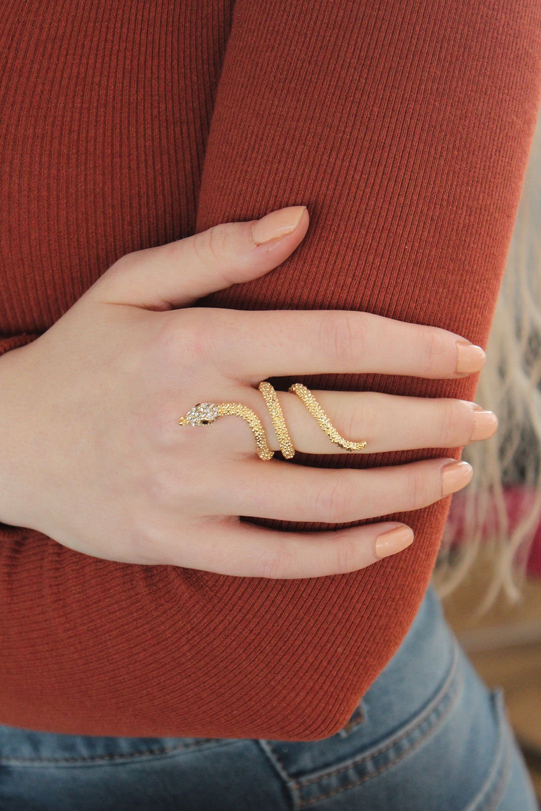 Ayarlanabilir Gold Renk Zirkon Taşlı Yılan Yüzük