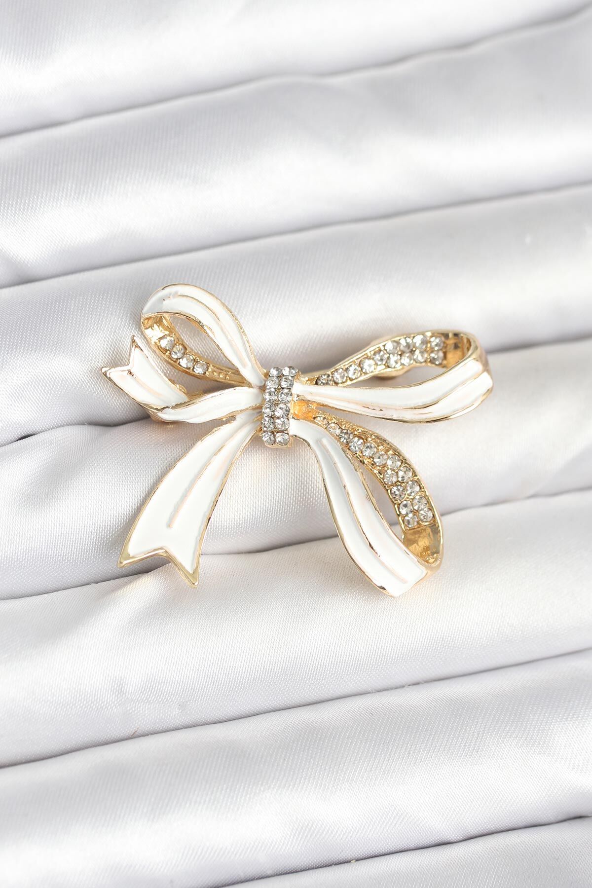 Beyaz Renk Fiyonk Model Broş e_BR461