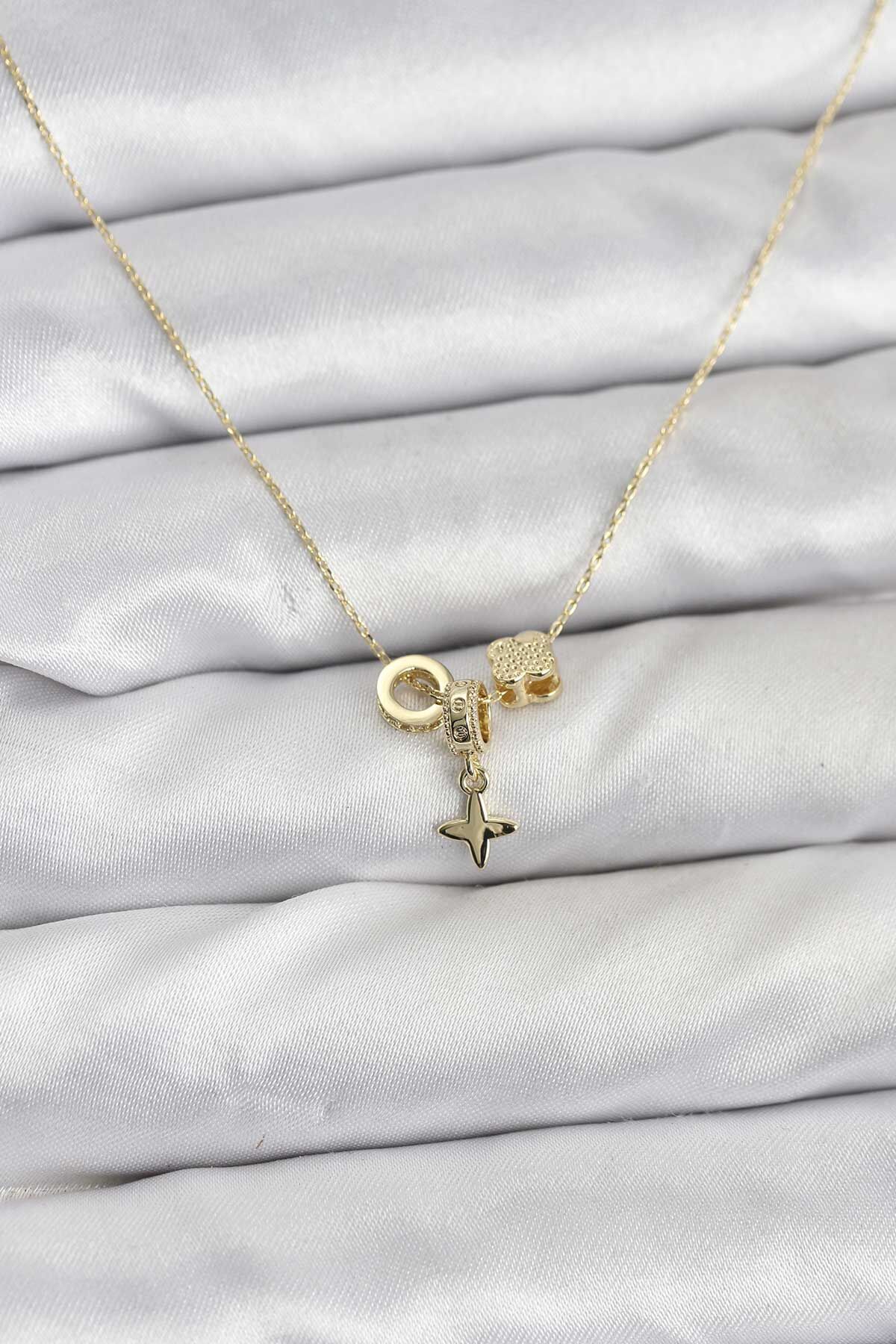 Gold Renk Pirinç Minimal Charmlı Kadın Kolye e_BKO10794