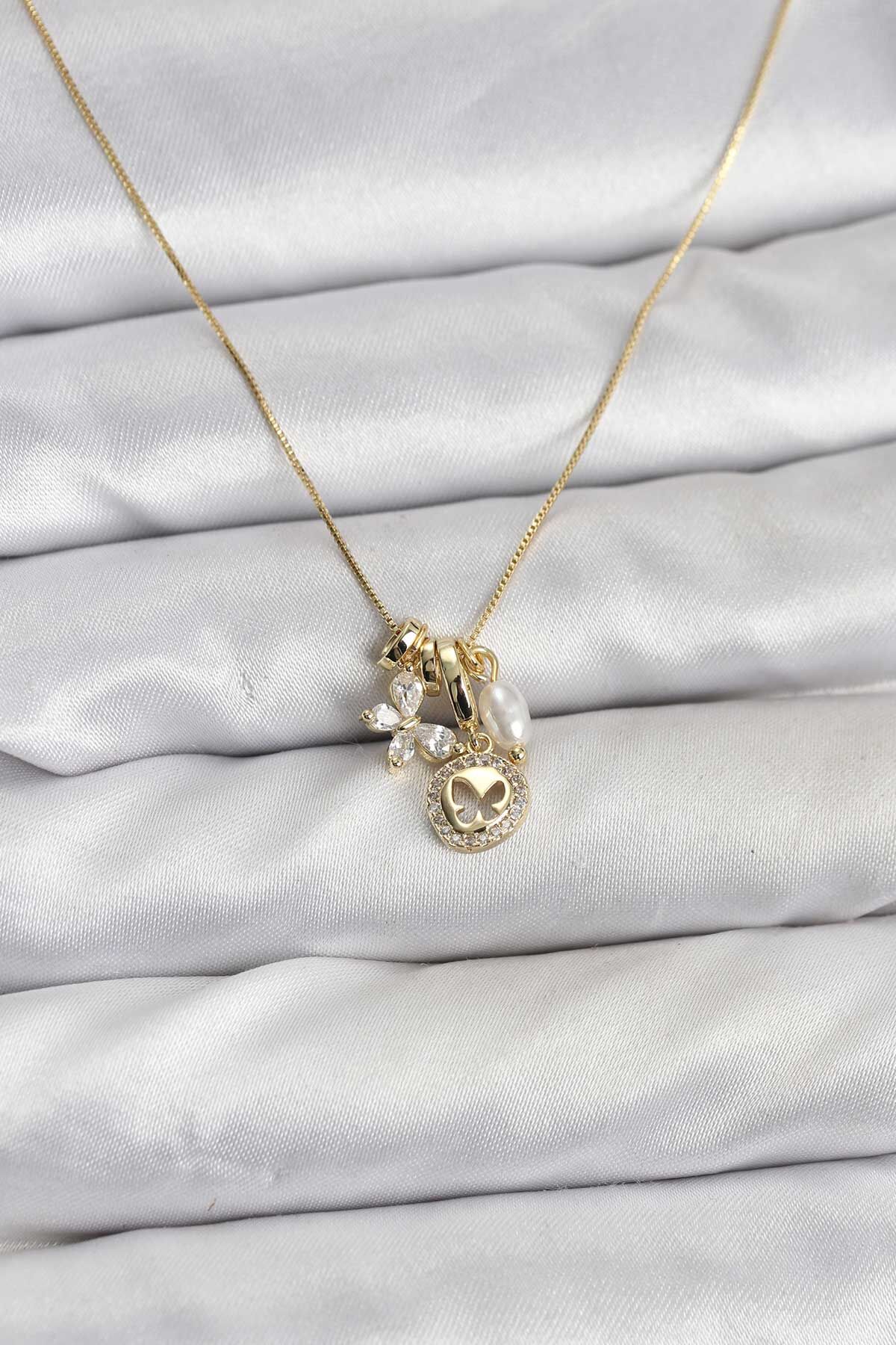 Gold Renk Pirinç Minimal Kelebek Charmlı Kadın Kolye