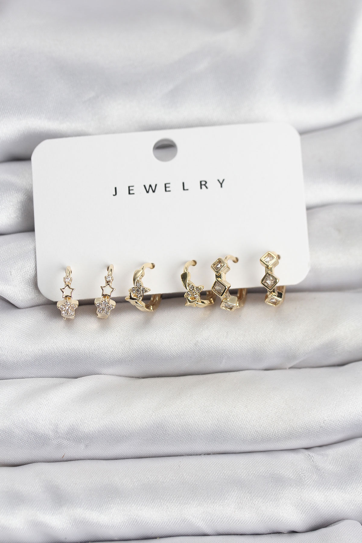 Gold Renk Pirinç Yıldız Modelli Kadın Küpe Seti