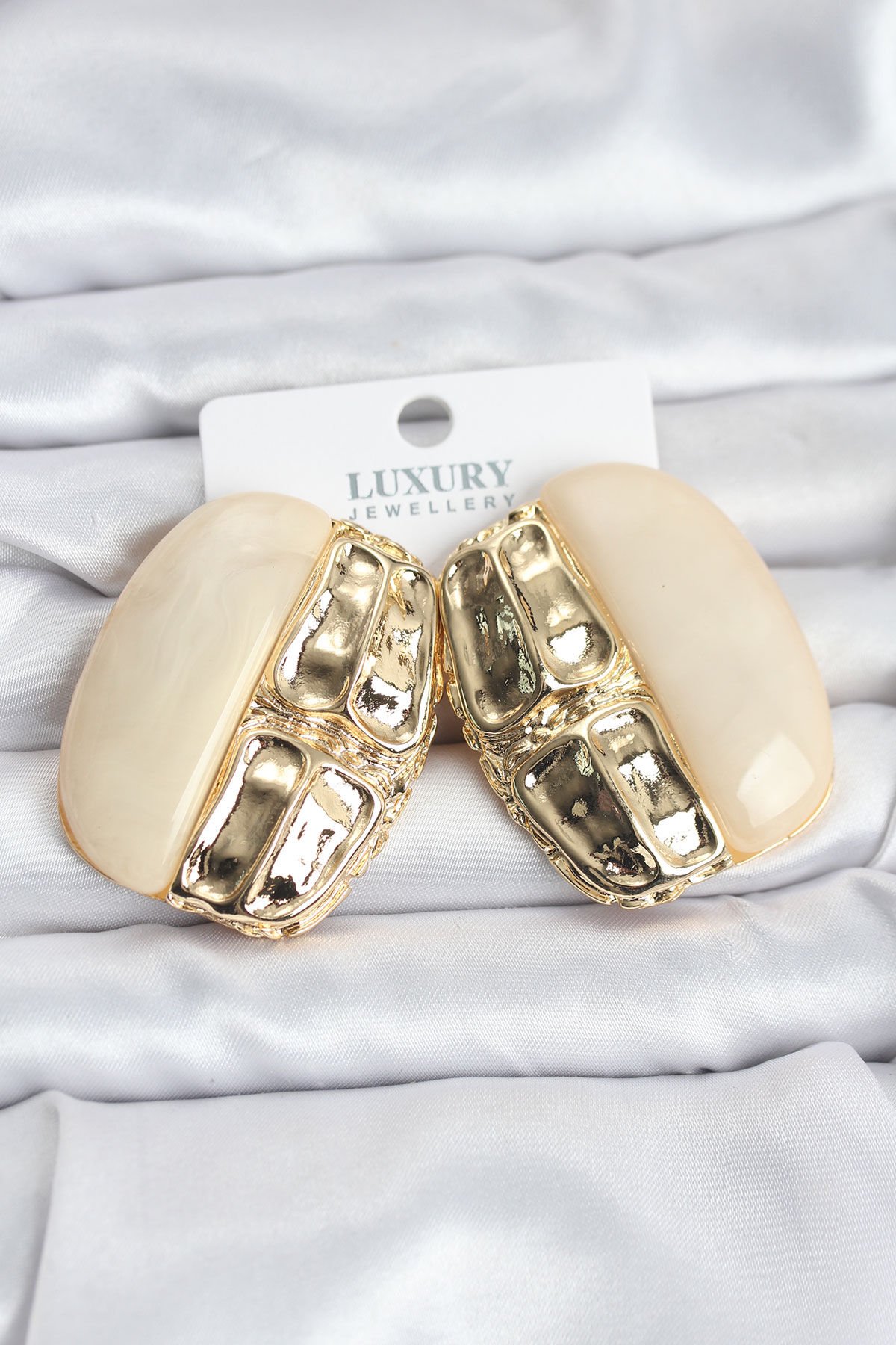 Krem Renk Pirinç Vintage Kadın Küpe e_BKP11499