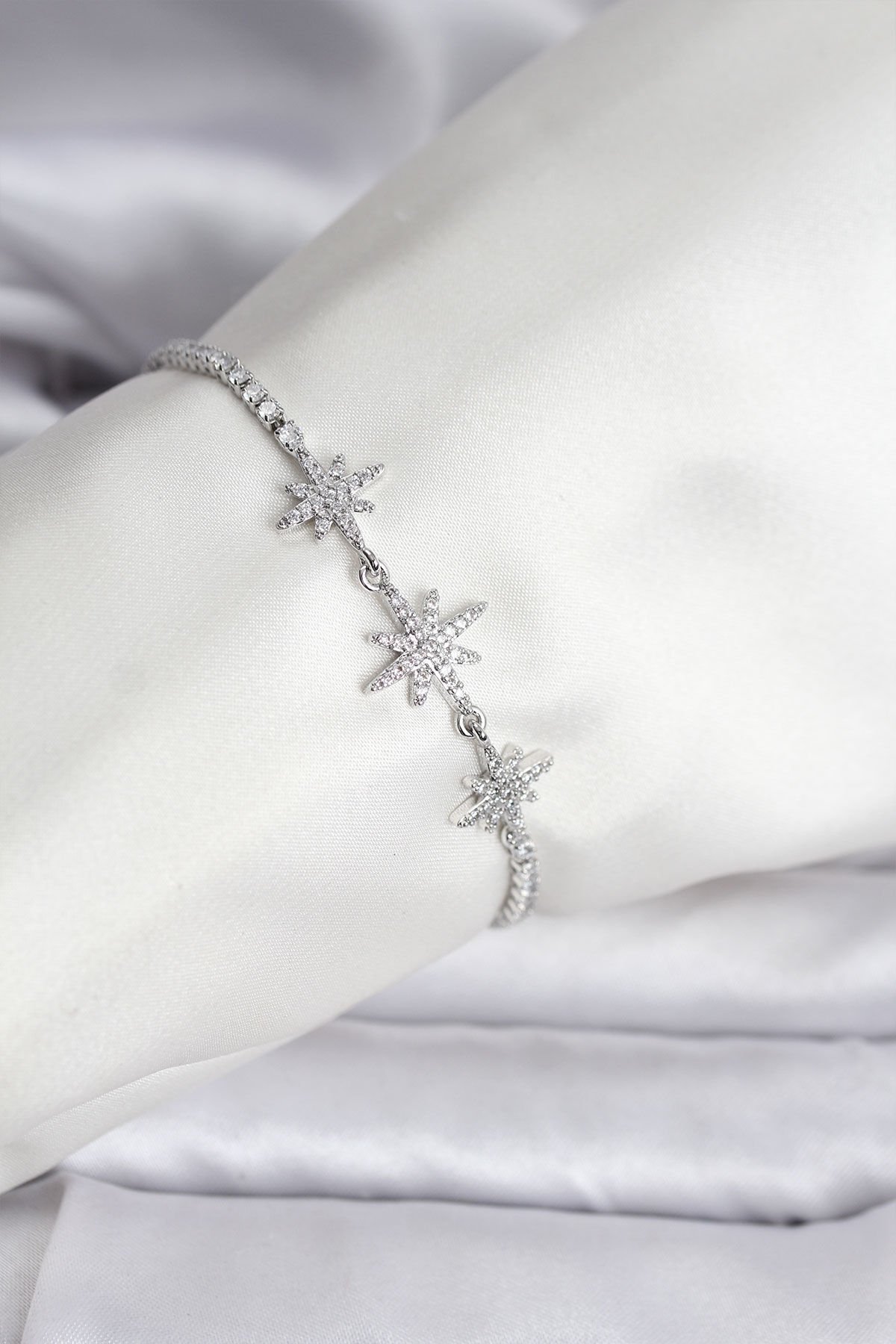 Kutup Yıldızı Model Zirkon Taşlı Gümüş Renk Su Yolu Kadın Bileklik e_BB8107
