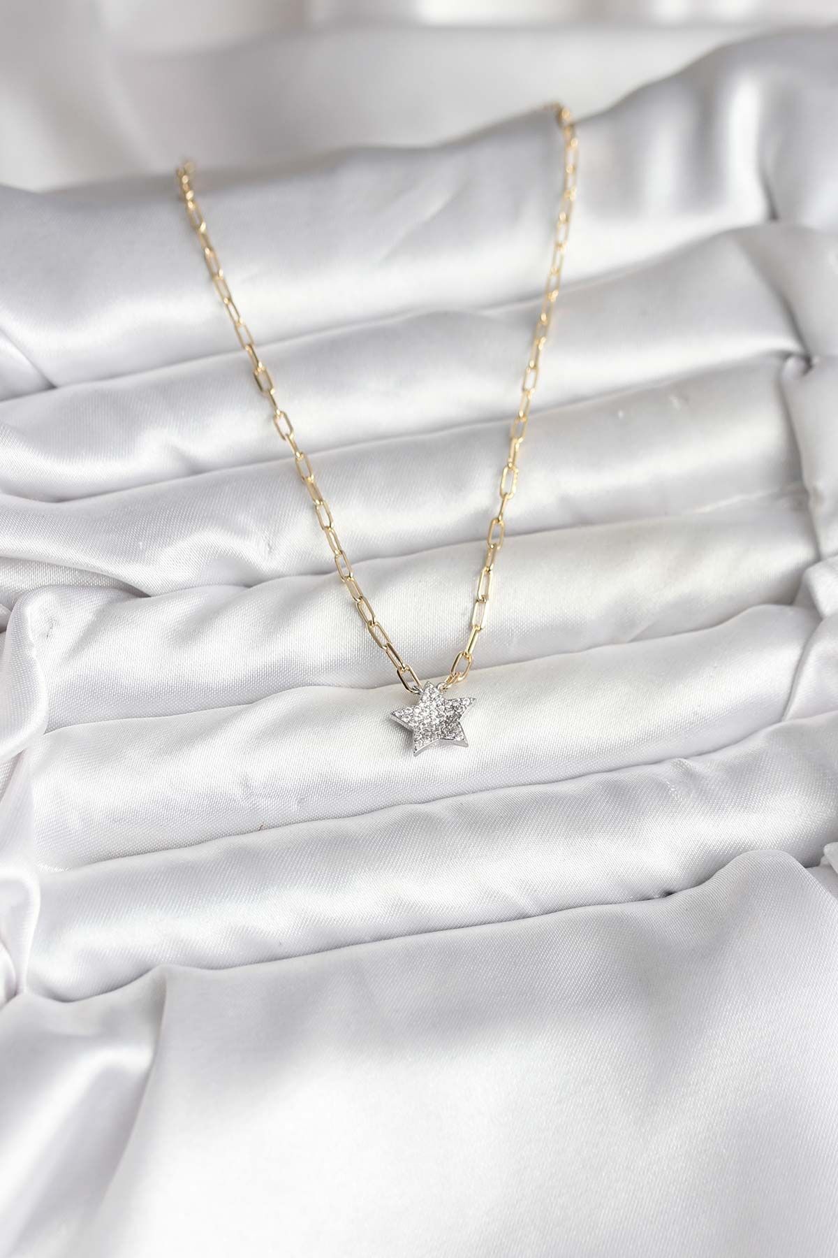 Pirinç Gold Renk Zincirli Zirkon Taşlı Minimal Yıldız Model Kadın Kolye