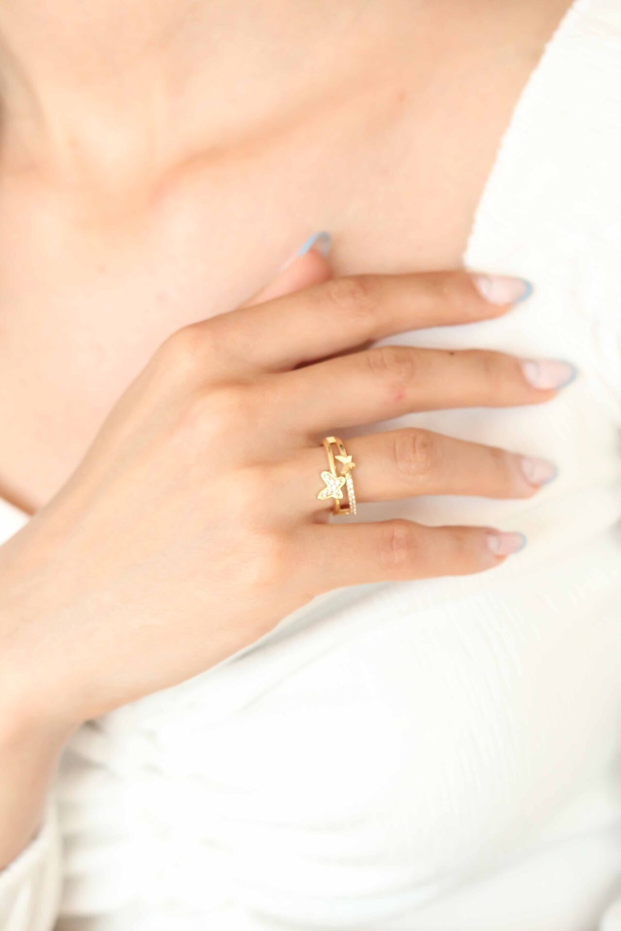 Zirkon Taşlı Altın Kaplama Kelebek Kadın Yüzük