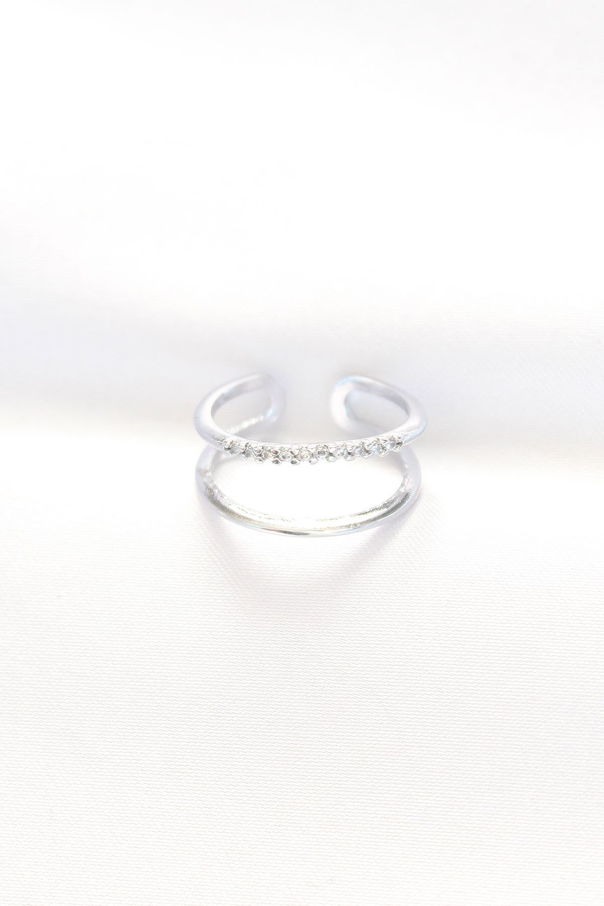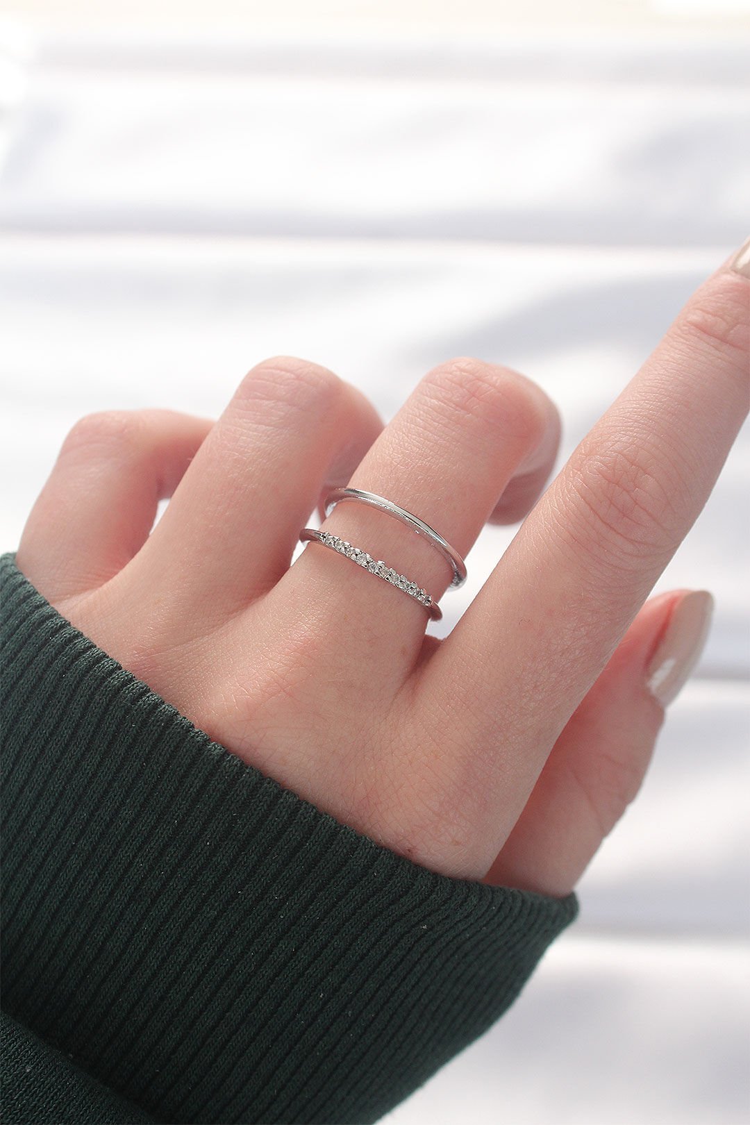 2li Görünümlü Su Yolu Tasarımlı Silver Renk Ayarlanabilir Yüzük