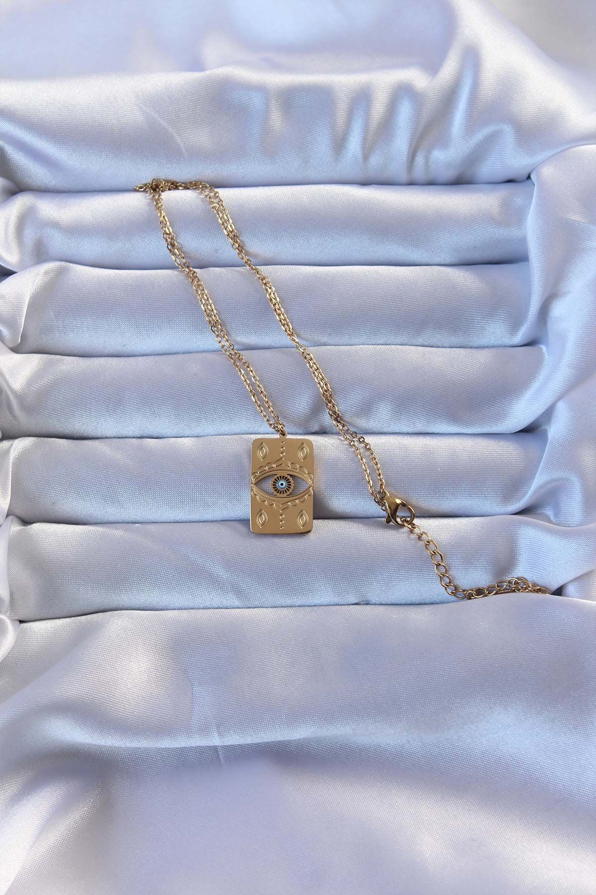 316L Altın Renk İşlemeli Nazarlı Vintage Kolye e_BKO9266