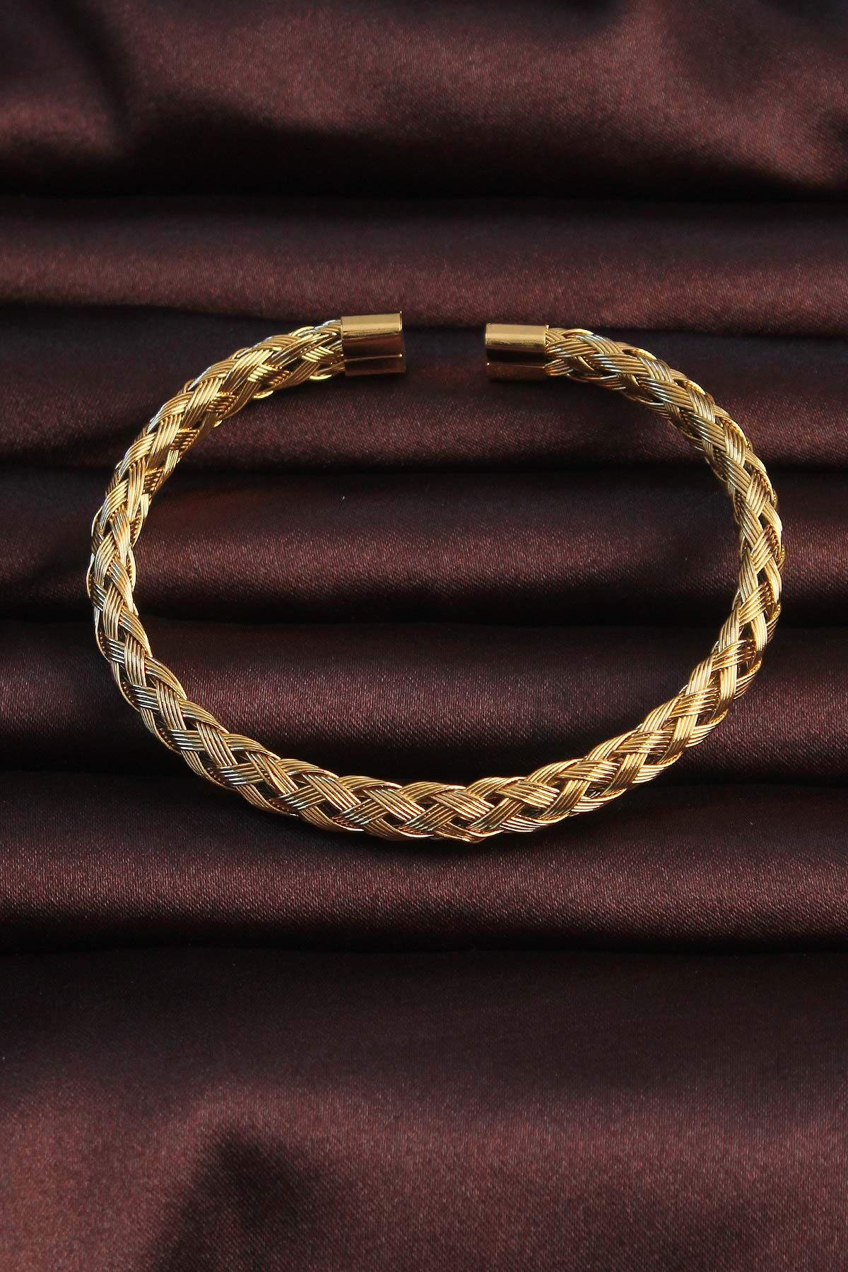 316L Çelik Altın Renk Kalın Yassı Örgü Model Erkek Bileklik