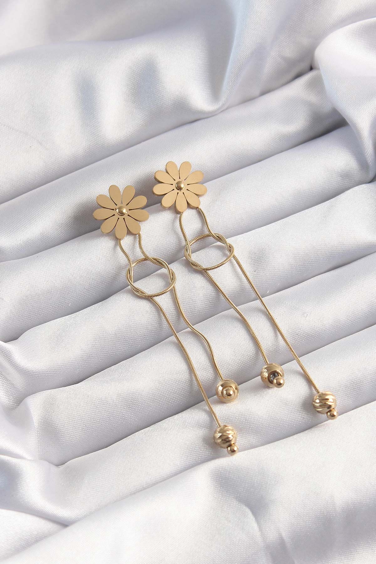 316L Çelik Altın Renk Sallantılı Düğüm Model Papatya Küpe e_BKP9497