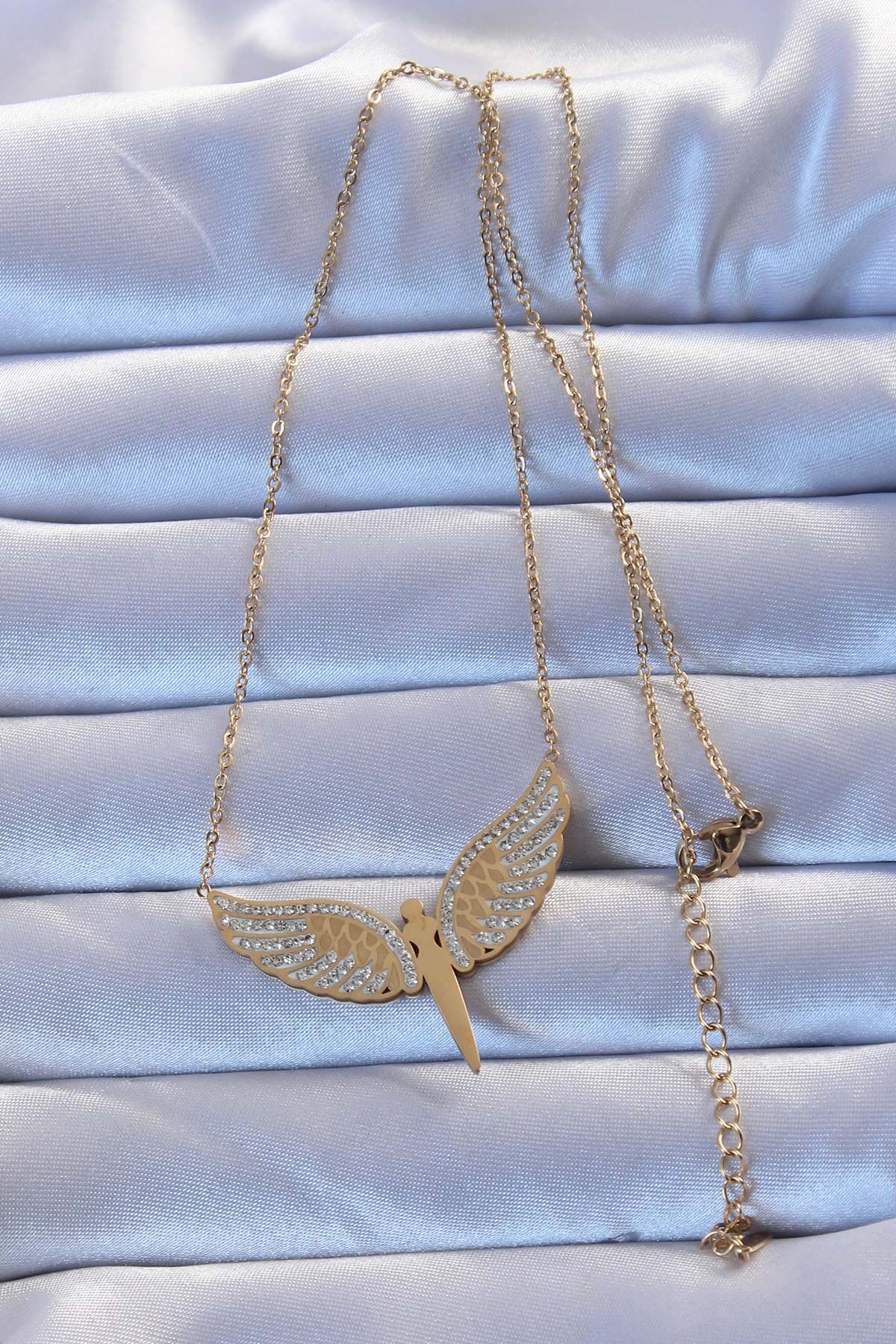 316L Çelik Altın Renk Zirkon Taşlı Mikail Kolye