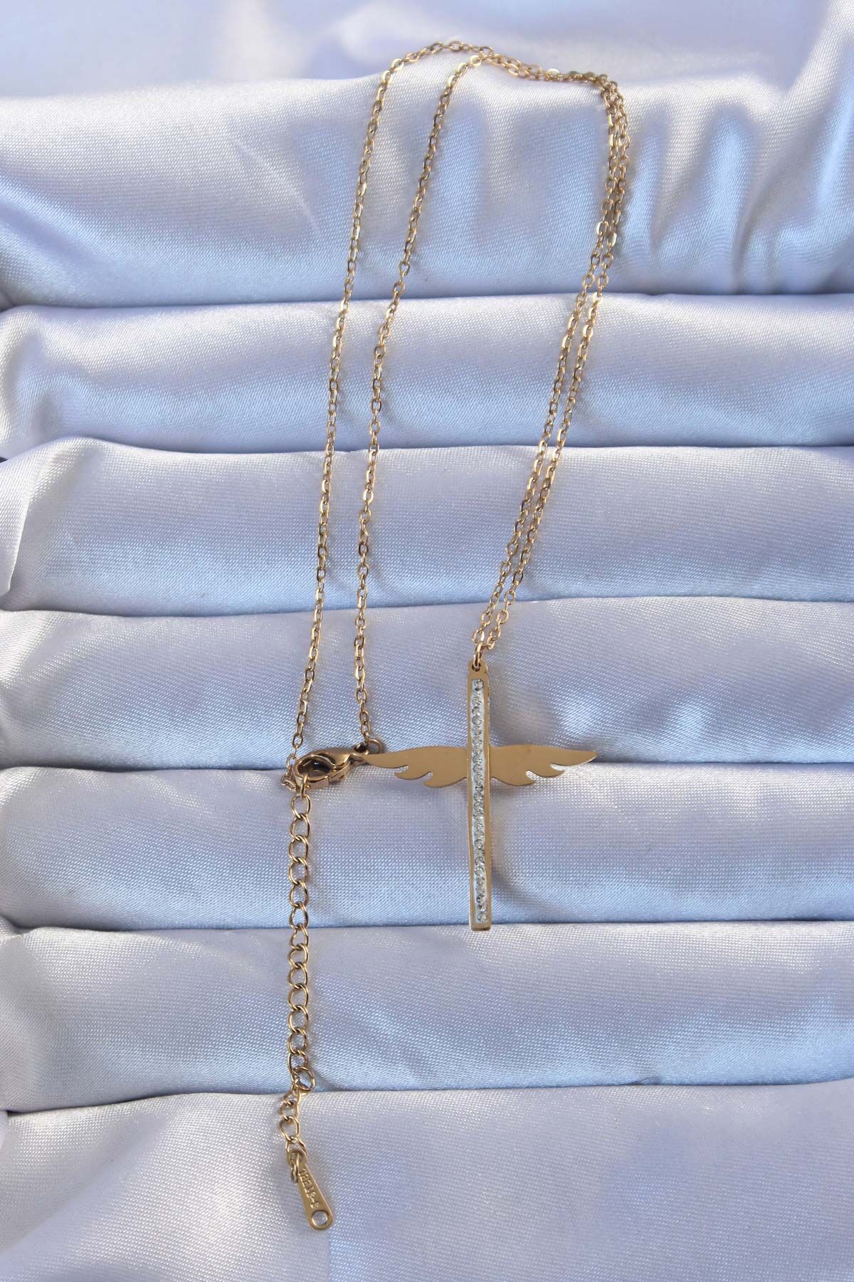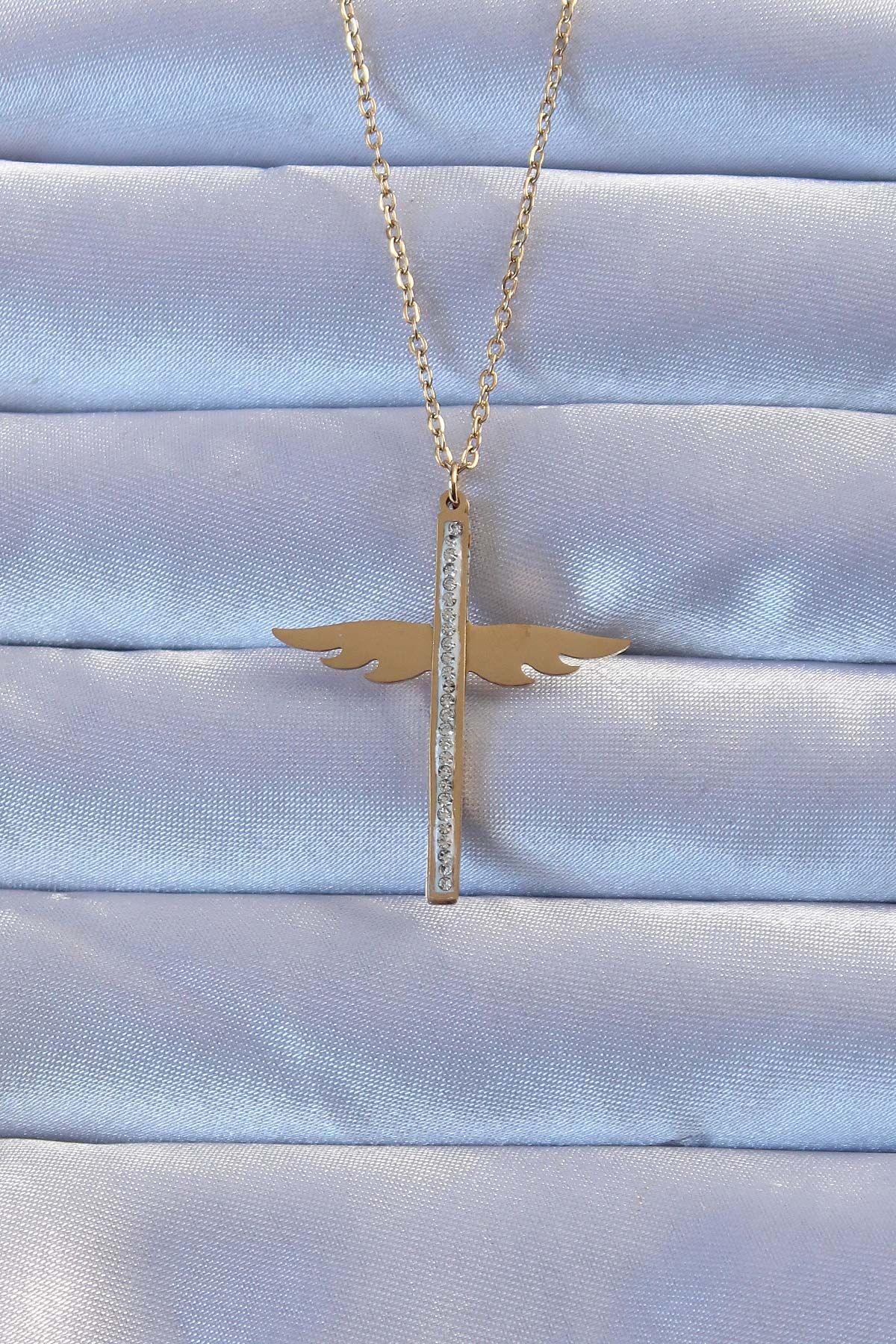 316L Çelik Altın Renk Zirkon Taşlı Mikail Kolye e_BKO9265