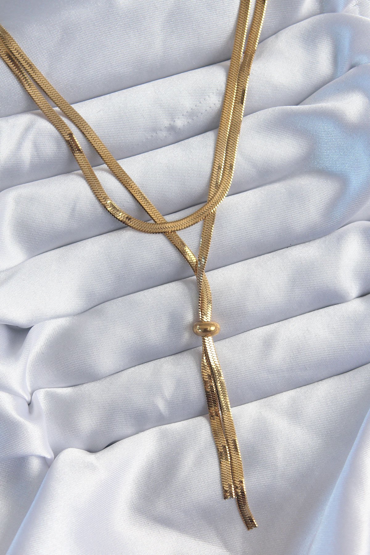 316L Çelik Gold Renk 2'li İtalyan Zincir Asansör Model Sallantı Detay Kadın Kolye
