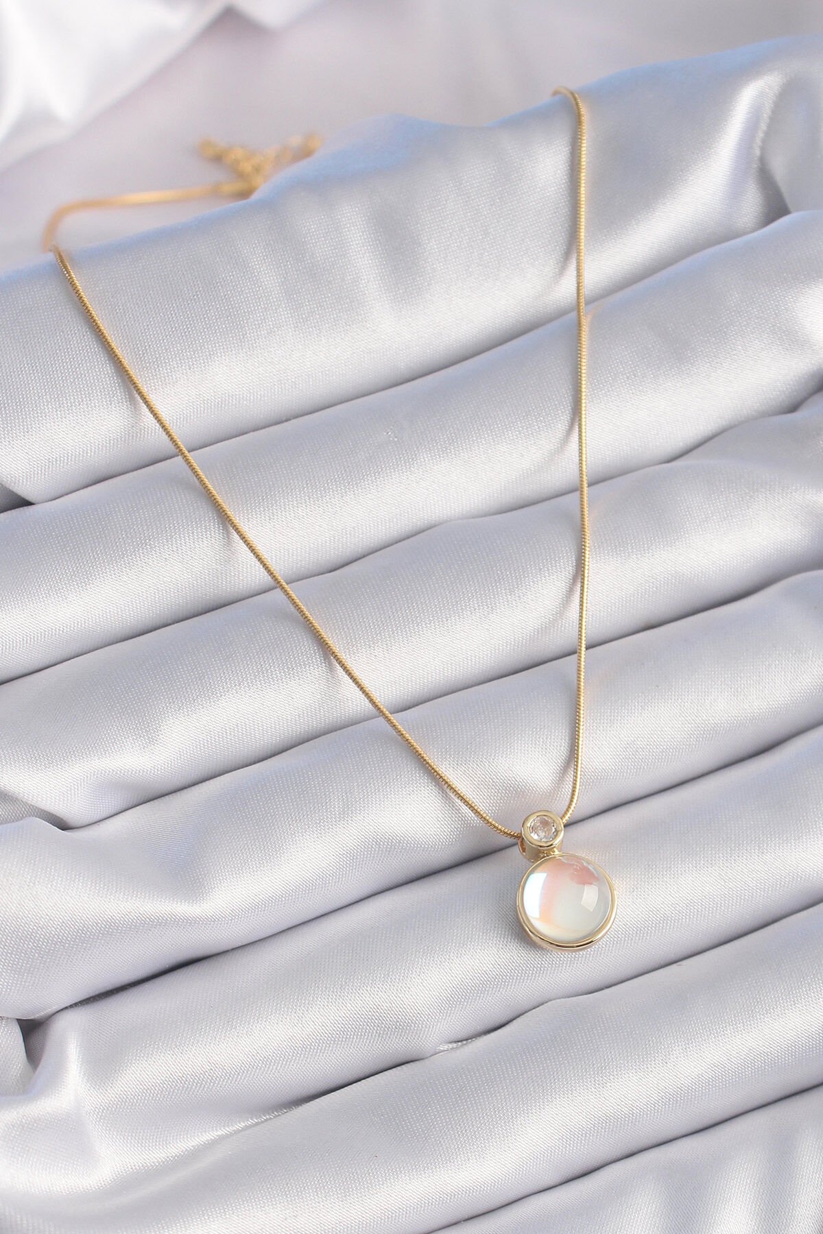316L Çelik Gold Renk Beyaz Sedefli Vintage Kadın Kolye