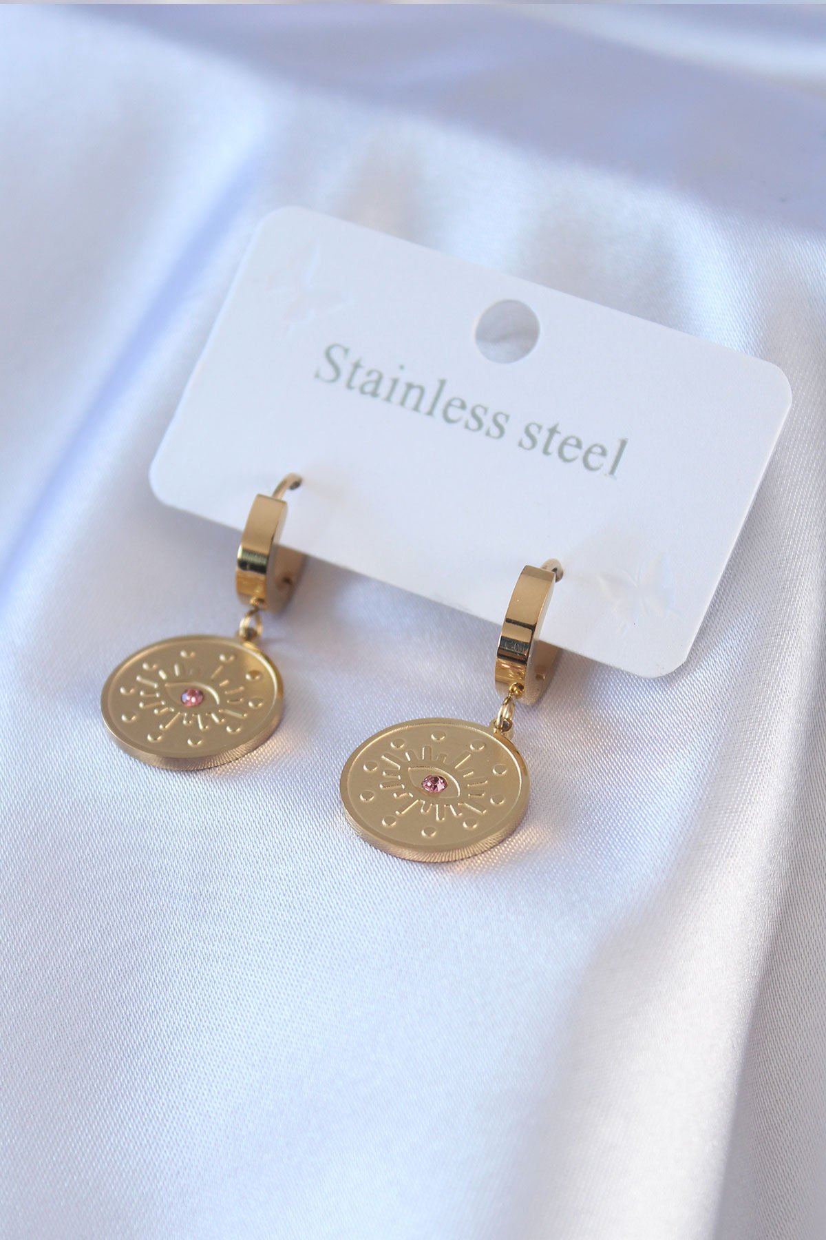 316L Çelik Gold Renk Göz İşleme Zirkon Taş Detay Kadın Küpe