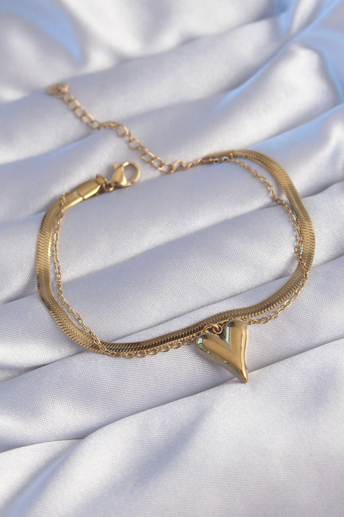 316L Çelik Gold Renk İtalyan Zincirli Kalp Model Bileklik e_BB6099