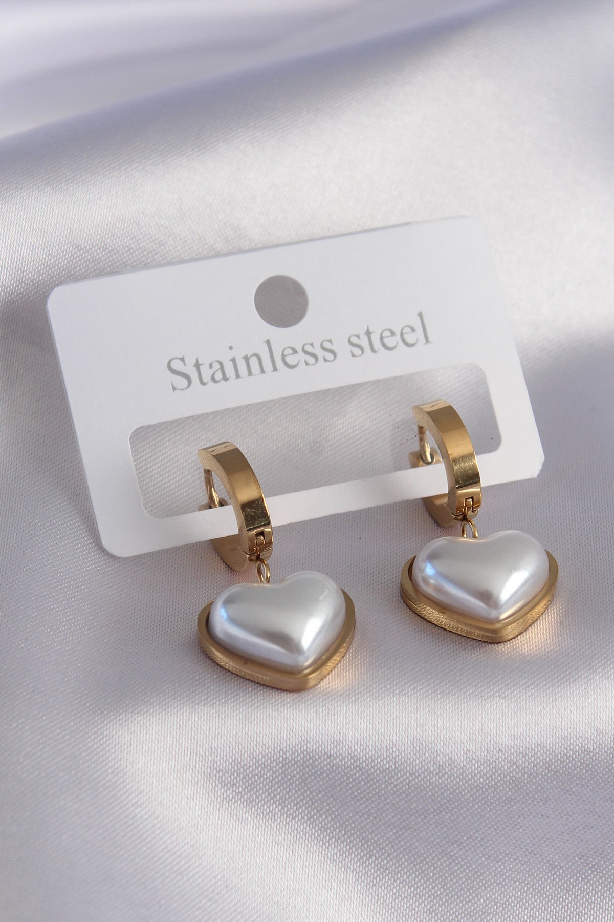 316L Çelik Gold Renk Kalp Model Kadın Küpe e_BKP7458