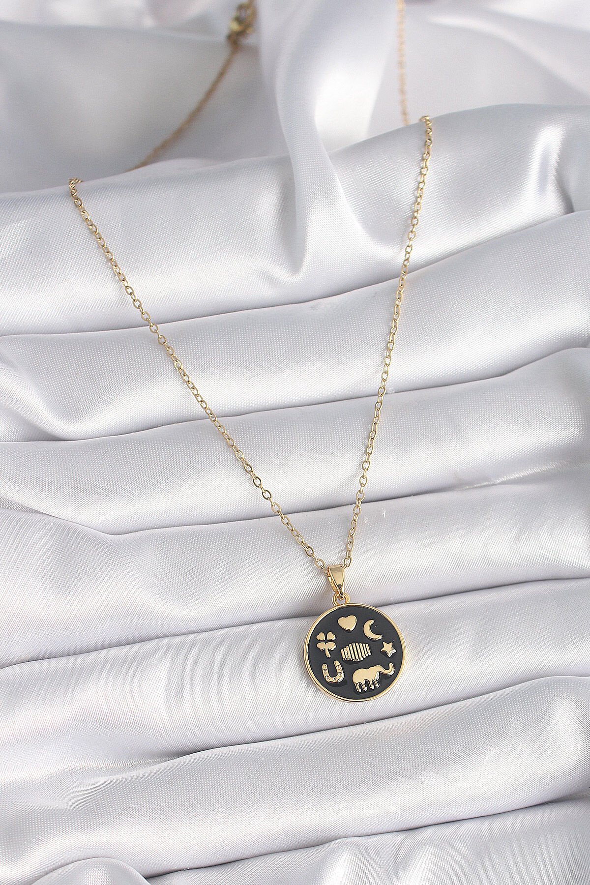 316L Çelik Gold Renk Siyah Şans Kolyesi