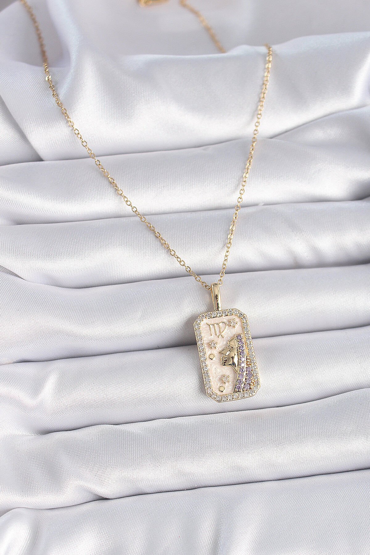 316L Çelik Gold Renk Zincir Başak Burcu Zirkon Taşlı Kadın Kolye e_BKO9461