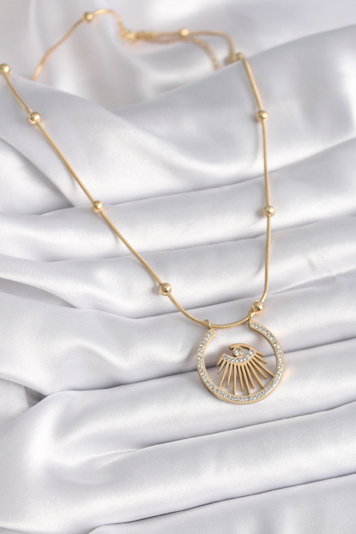 316L Çelik Gold Renk Zirkon Taşlı Göz Model Kadın Kolye
