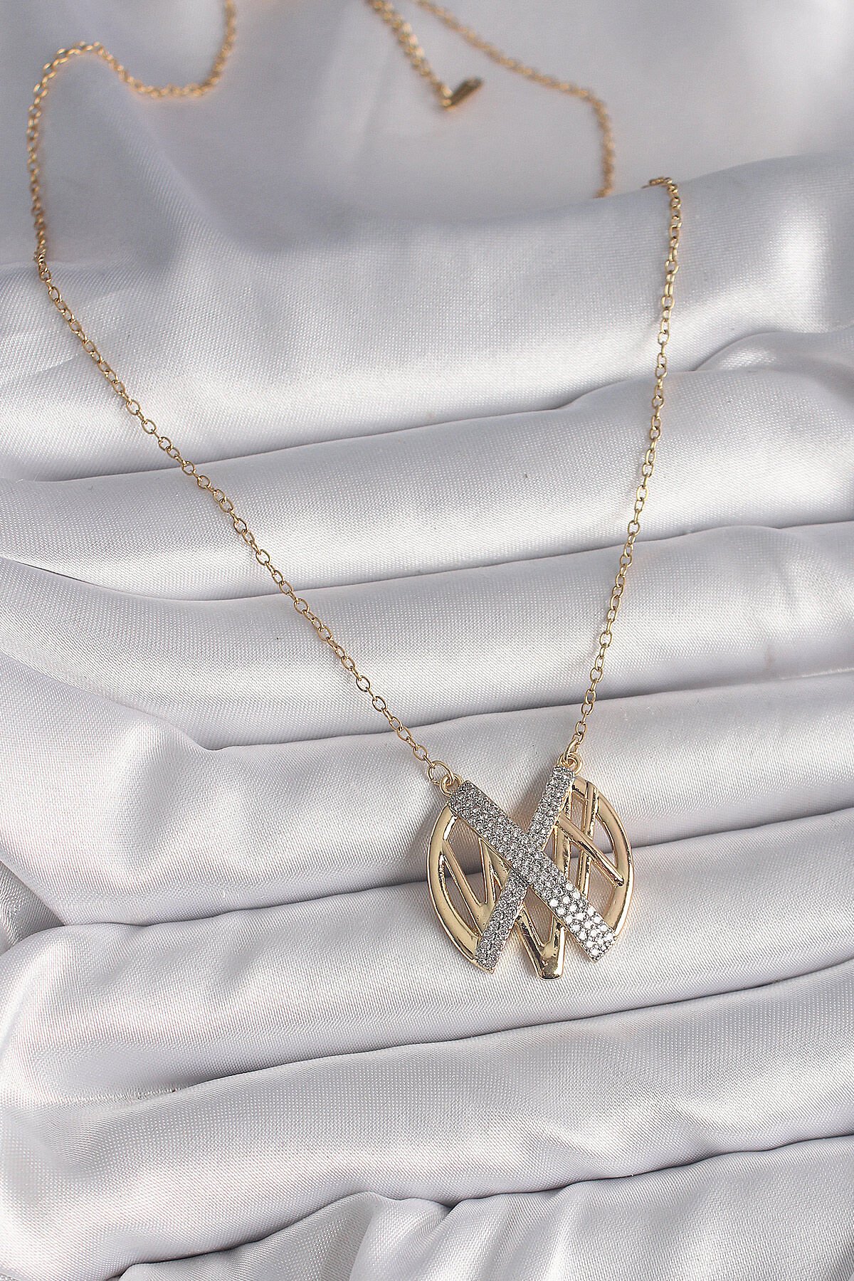 316L Çelik Gold Renk Zirkon Taşlı Vintage Model Kadın Kolye e_BKO9762