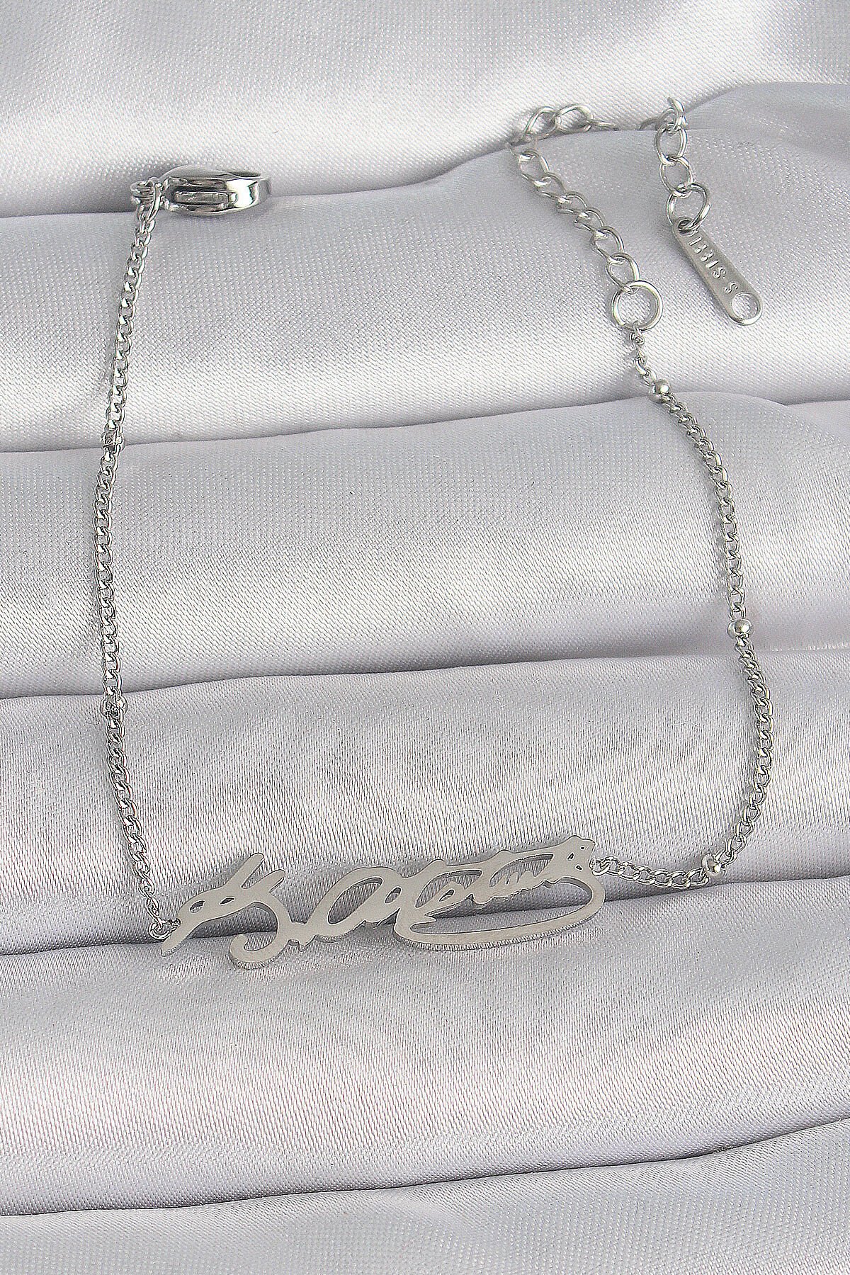 316L Çelik Gümüş Renk Atatürk İmza Model Kadın Bileklik e_BB6660