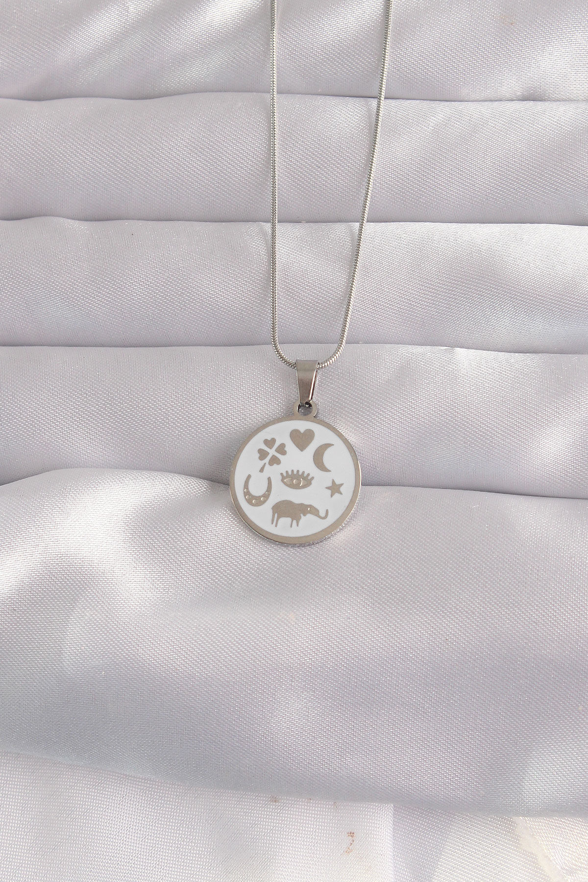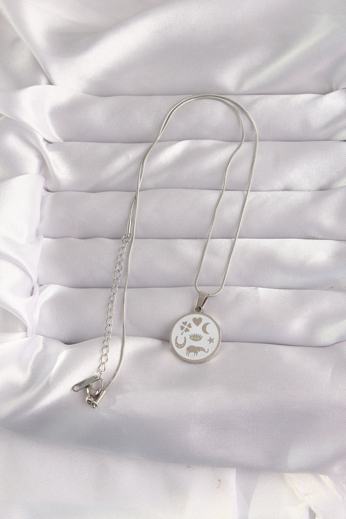 316L Çelik Gümüş Renk Beyaz Mineli Karışık Figürlü Tarot Kolye e_BKO9052
