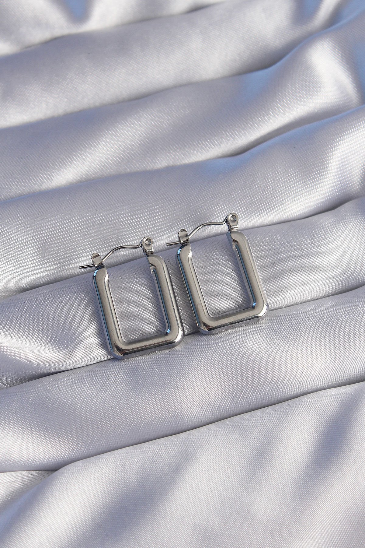 316L Çelik Gümüş Renk Dikdörtgen Model Küpe