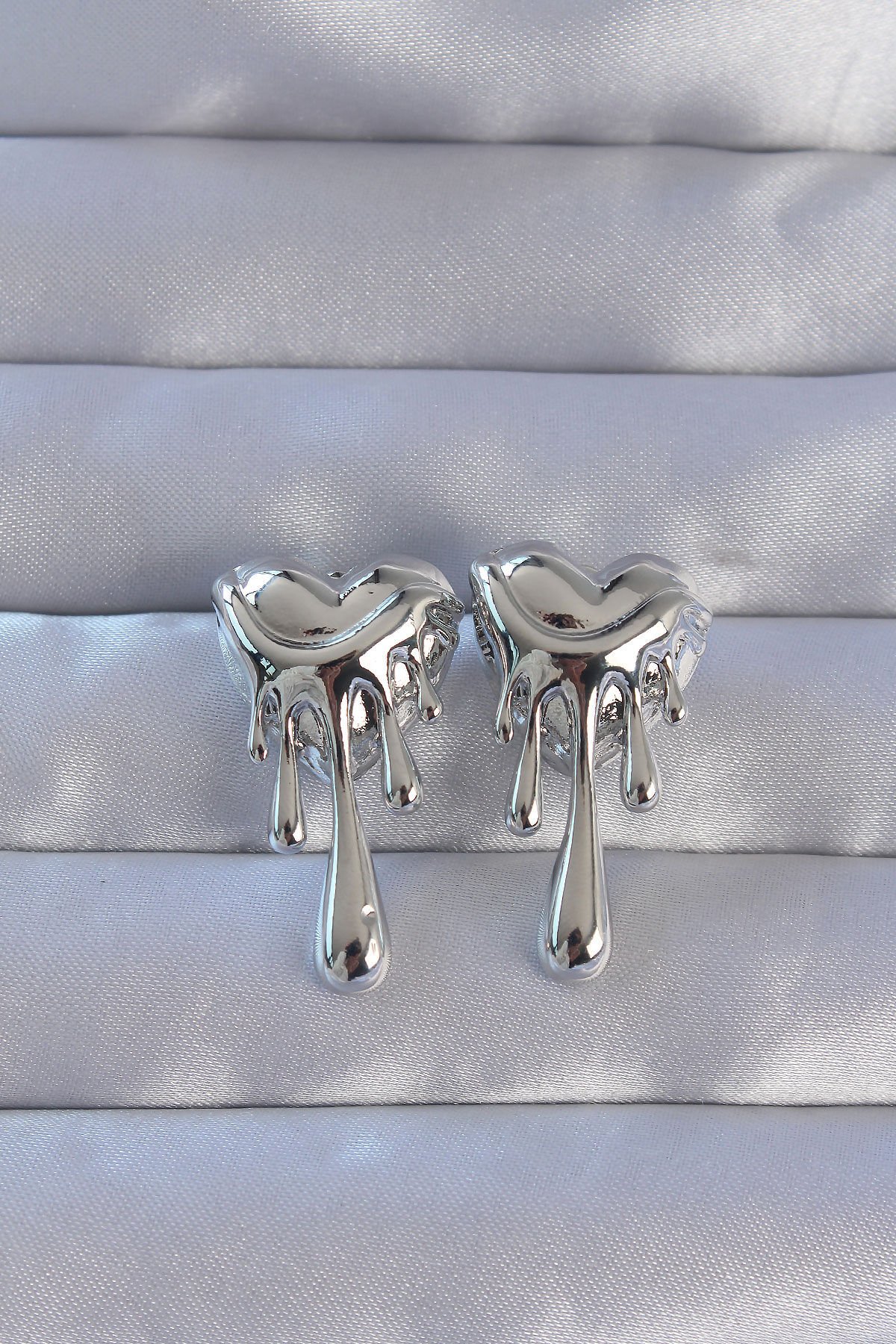 316L Çelik Gümüş Renk Eriyen Kalp Tasarımlı Küpe