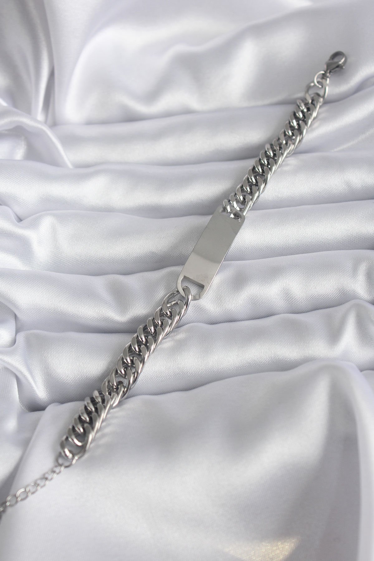 316L Çelik Gümüş Renk İsim Yazılabilir Plaka Model Kadın Bileklik e_BB5743