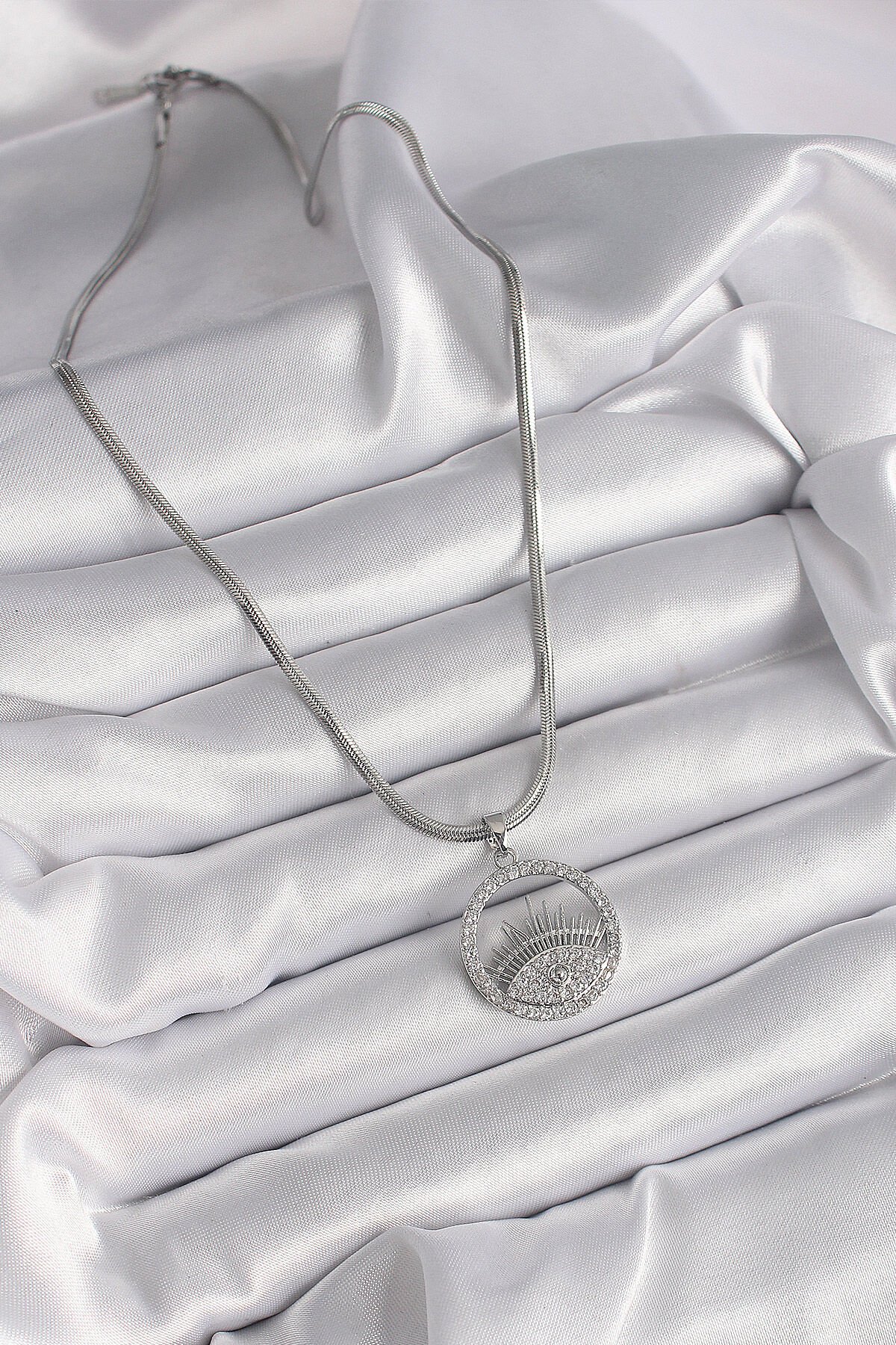 316L Çelik Gümüş Renk İtalyan Zincir Zirkon Taşlı Göz Model Kadın Kolye