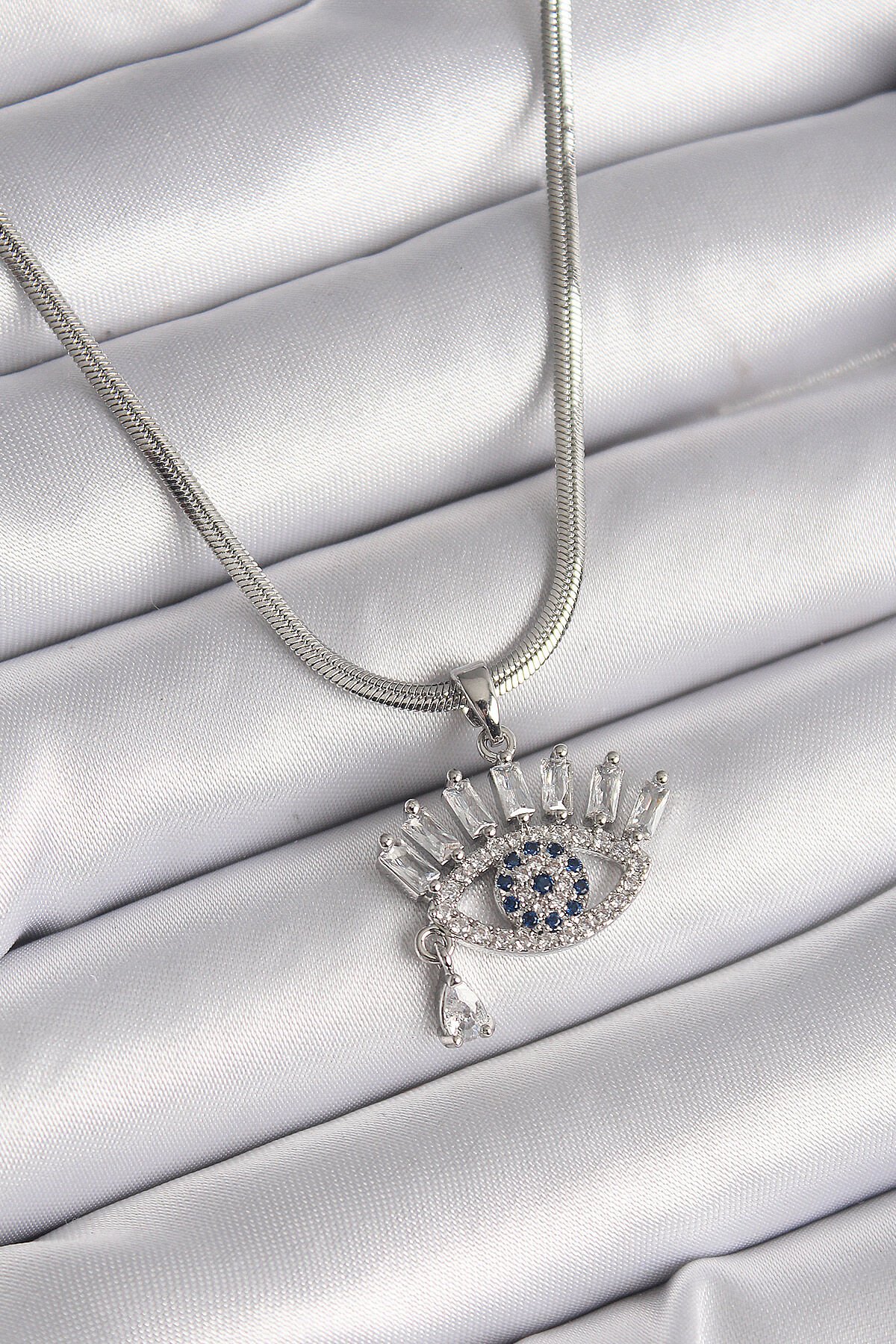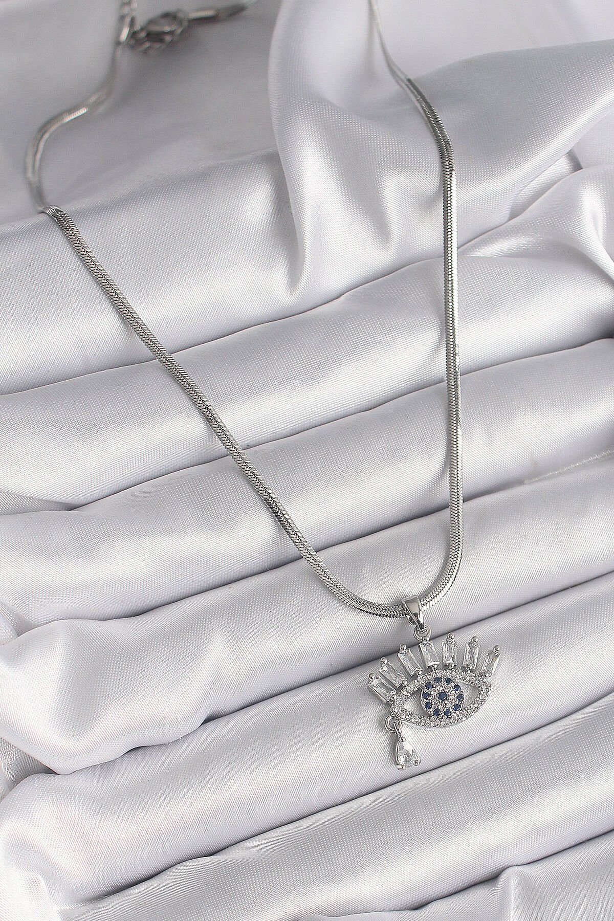 316L Çelik Gümüş Renk İtalyan Zincir Zirkon Taşlı Göz Model Kadın Kolye