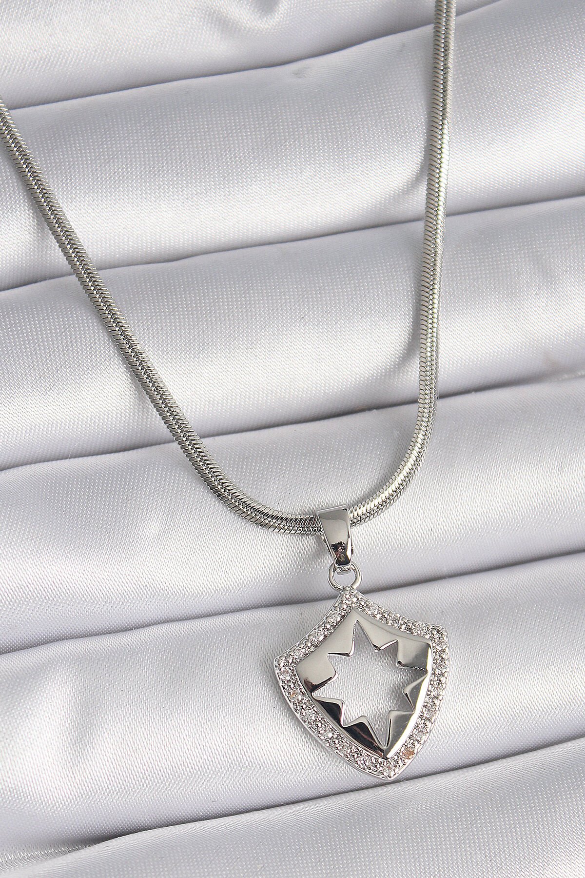316L Çelik Gümüş Renk İtalyan Zincir Zirkon Taşlı Kutup Yıldızı İşleme Model Kadın Kolye
