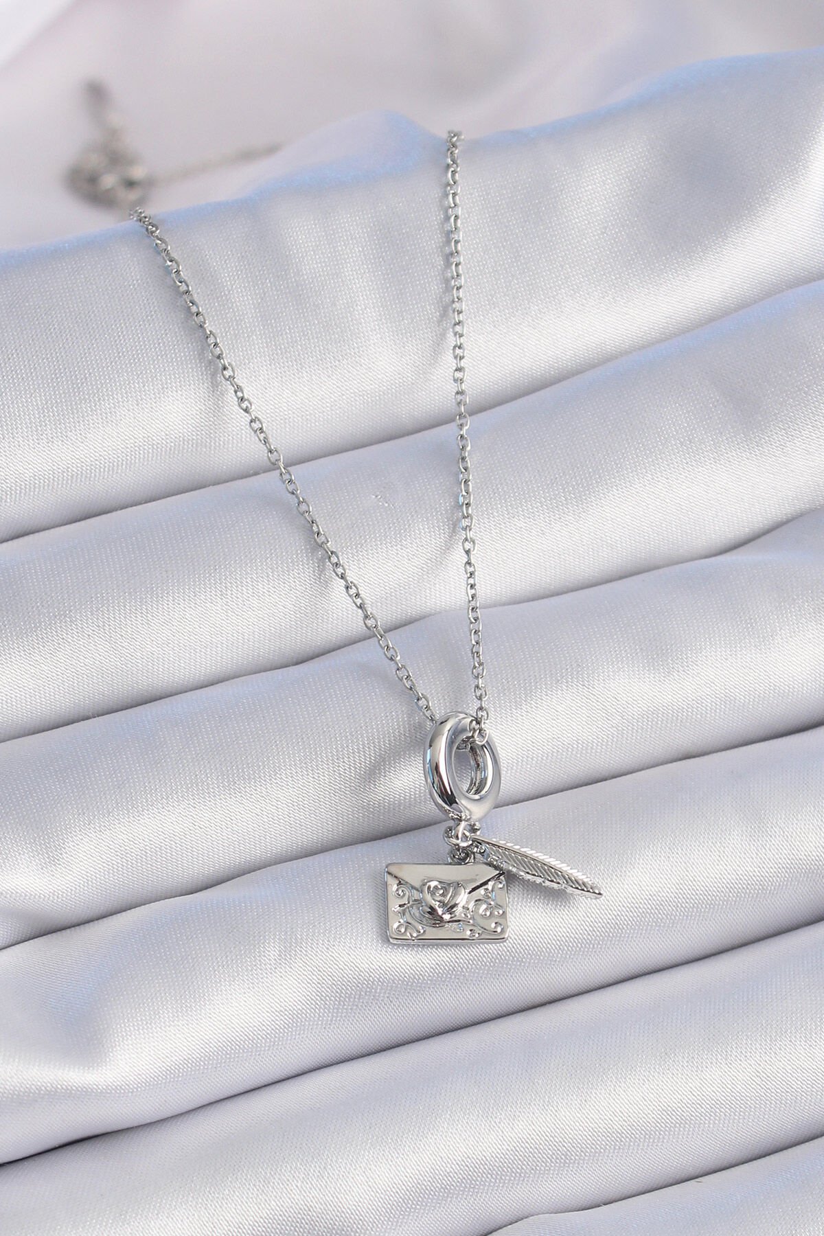 316L Çelik Gümüş Renk Kalp Detay Mektup Figür Charm Model Kadın Kolye