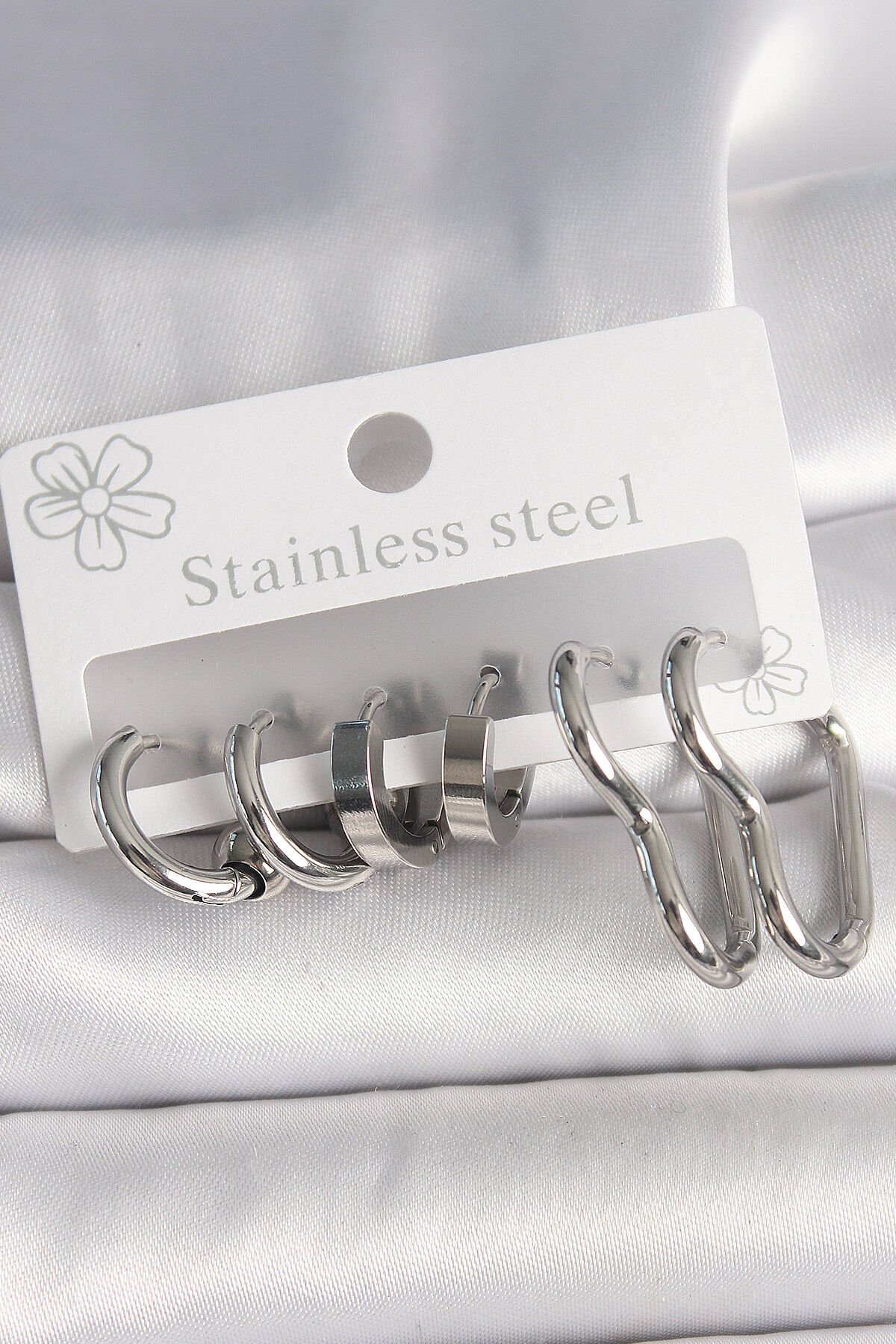 316L Çelik Gümüş Renk Kalp Halka Model Kadın Küpe Seti