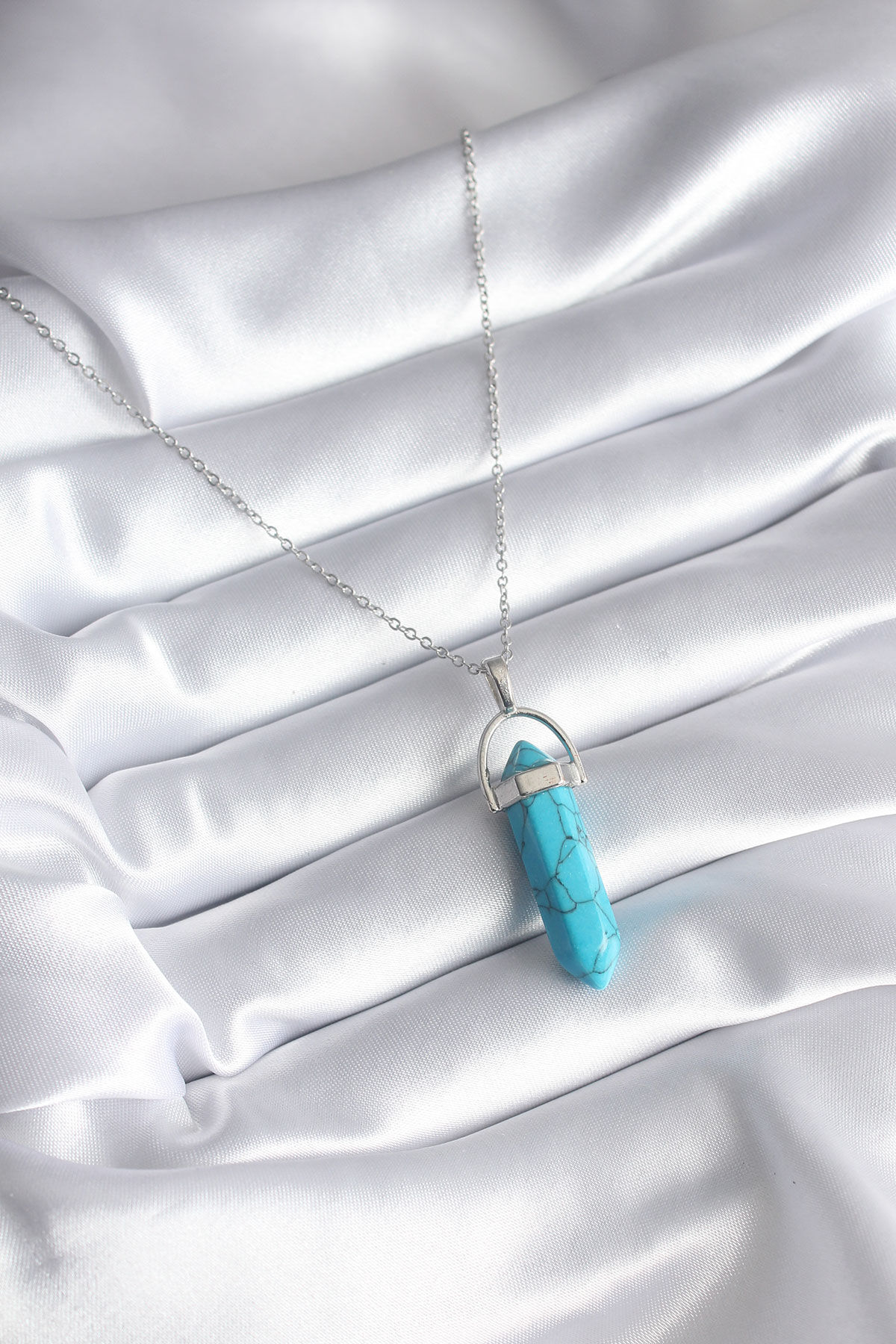 316L Çelik Gümüş Renk Mavi Taşlı Model Kadın Kolye
