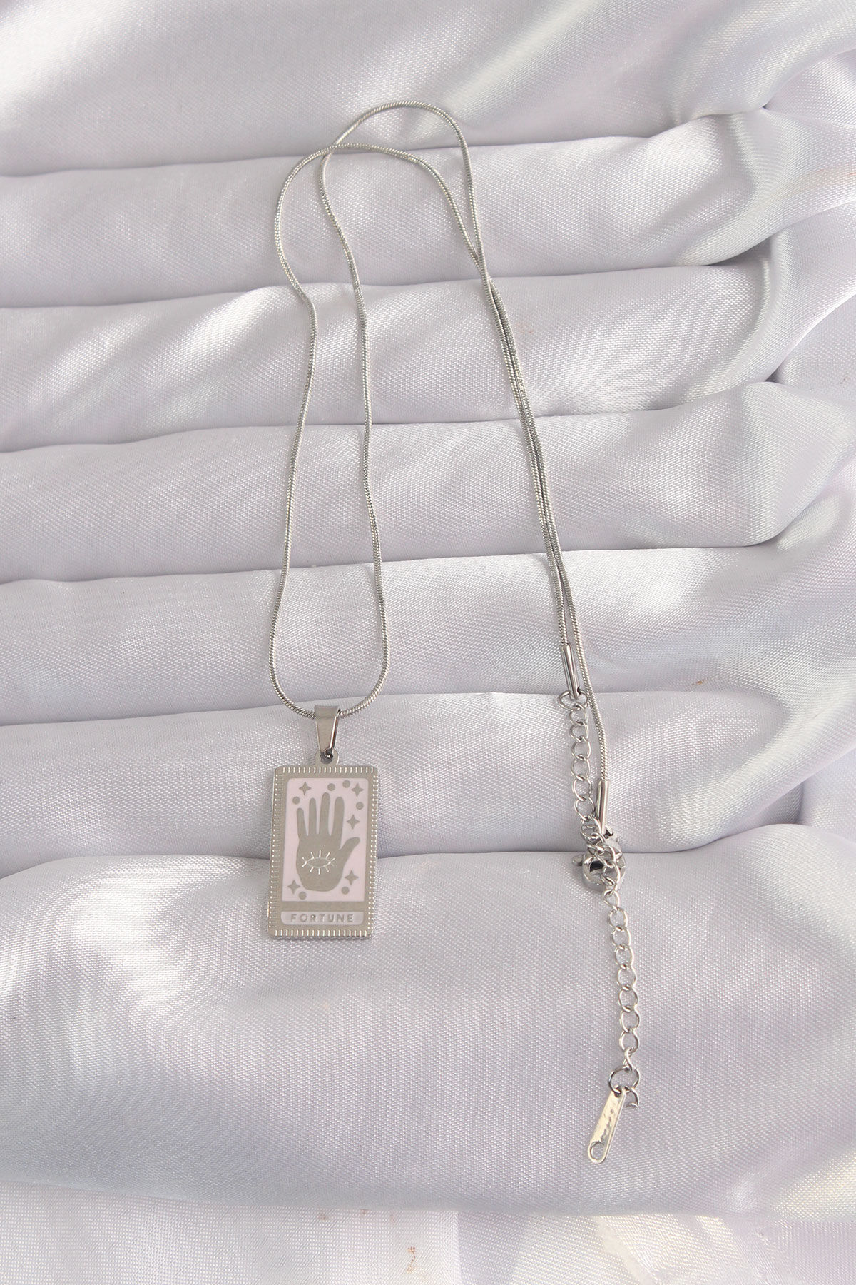 316L Çelik Gümüş Renk Pembe Mineli El Figür Tarot Kolye