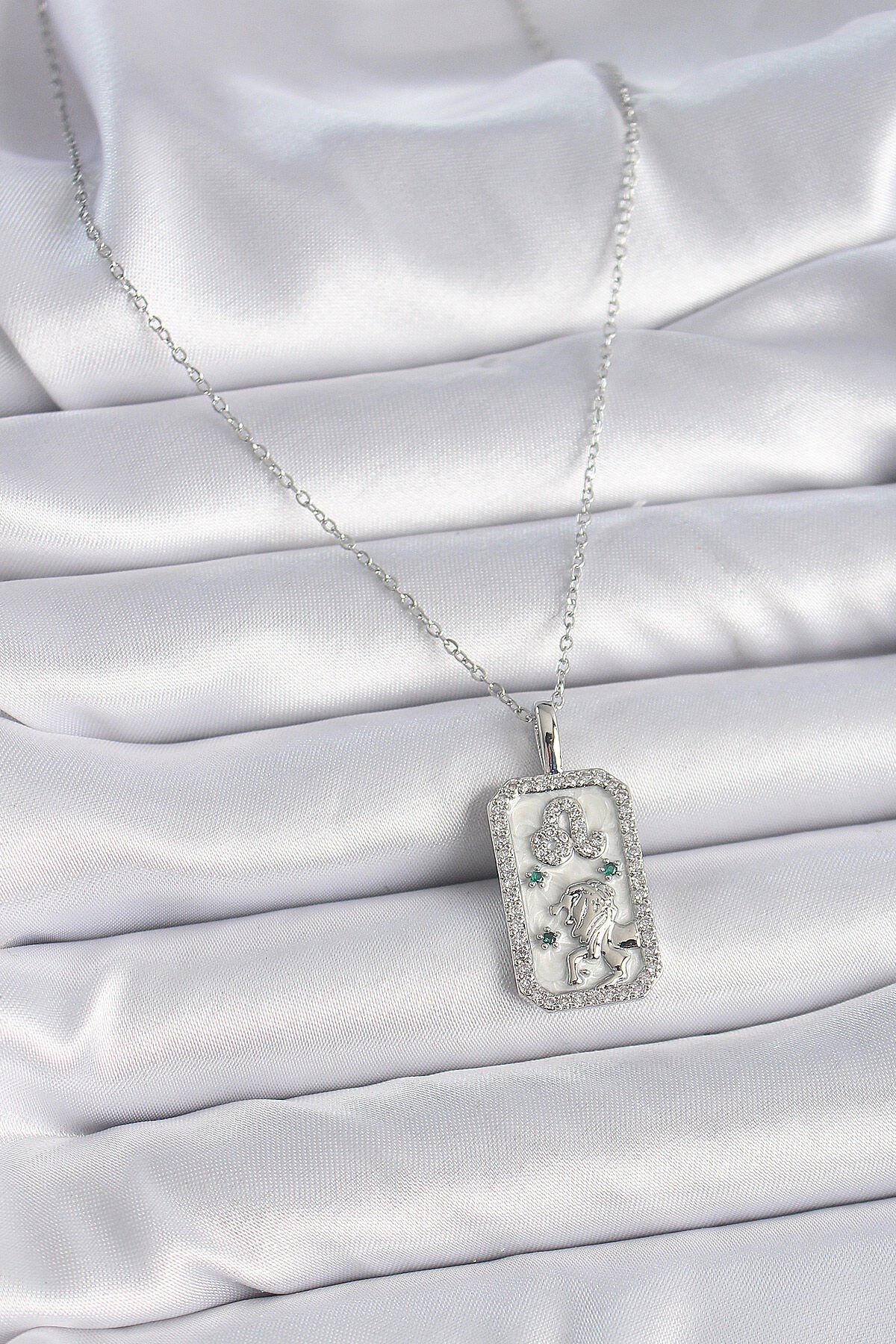 316L Çelik Gümüş Renk Zincir Aslan Burcu Zirkon Taşlı Kadın Kolye e_BKO9451