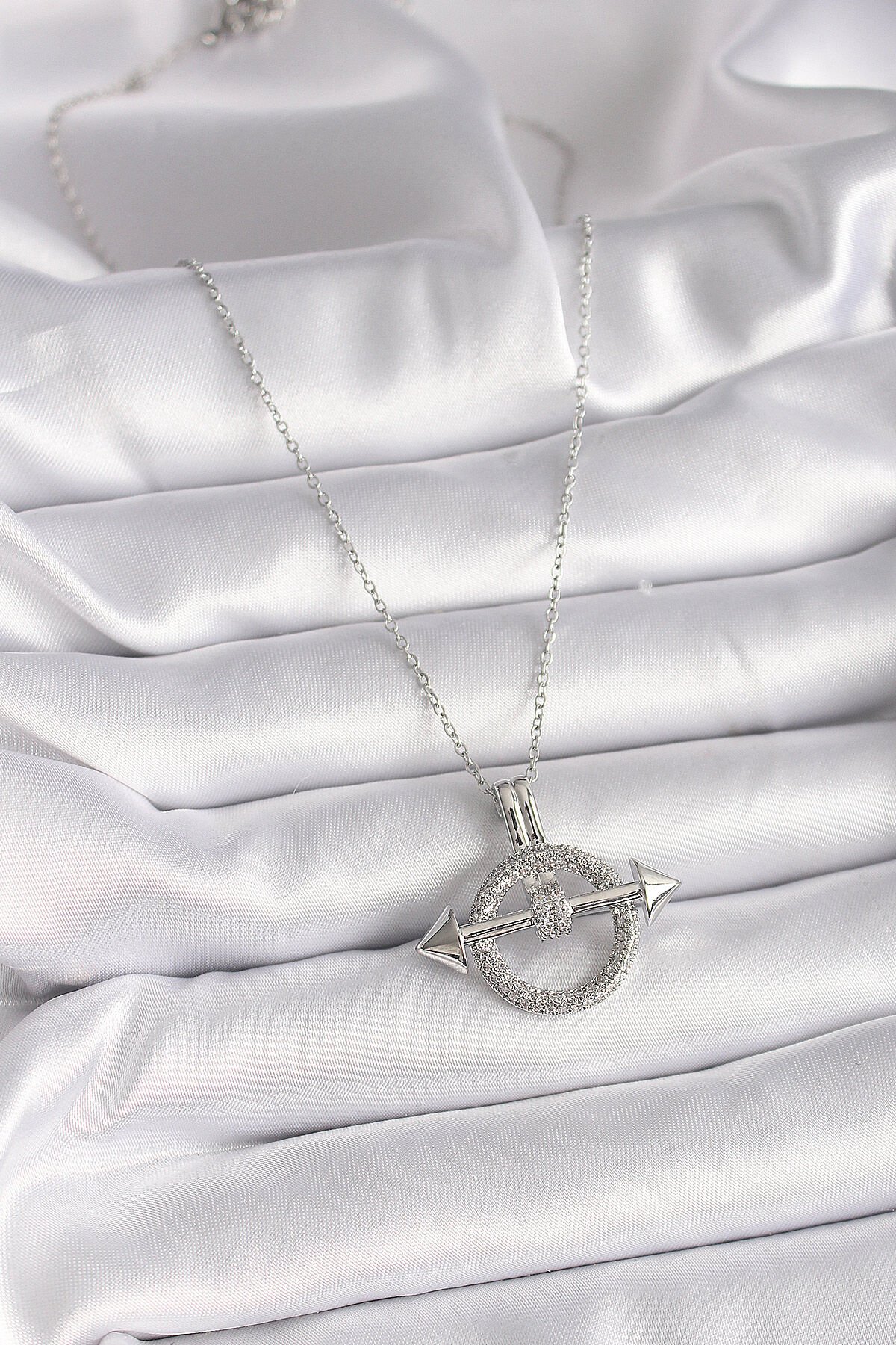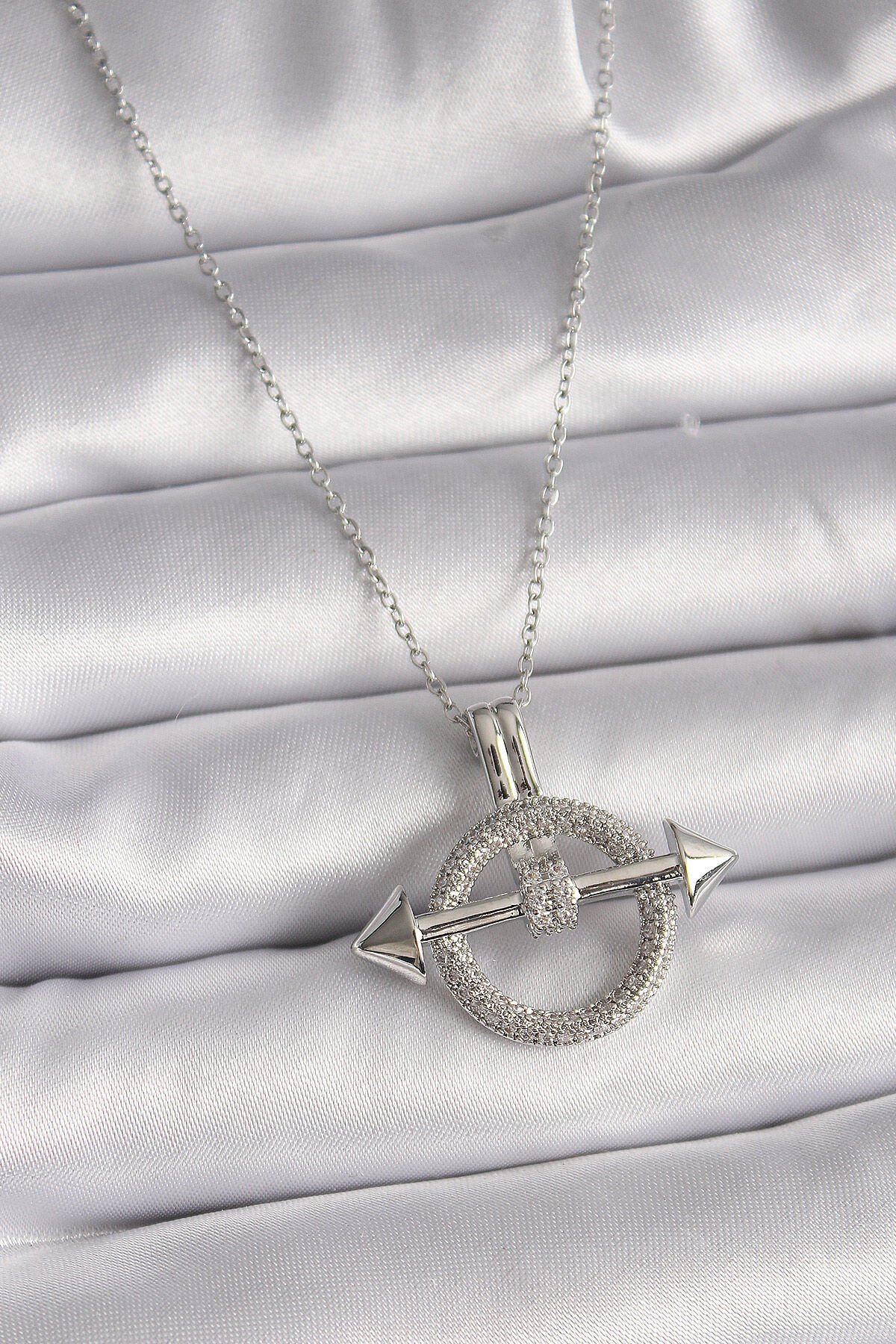 316L Çelik Gümüş Renk Zincir Zirkon Taşlı Halka Model Kadın Kolye e_BKO9506
