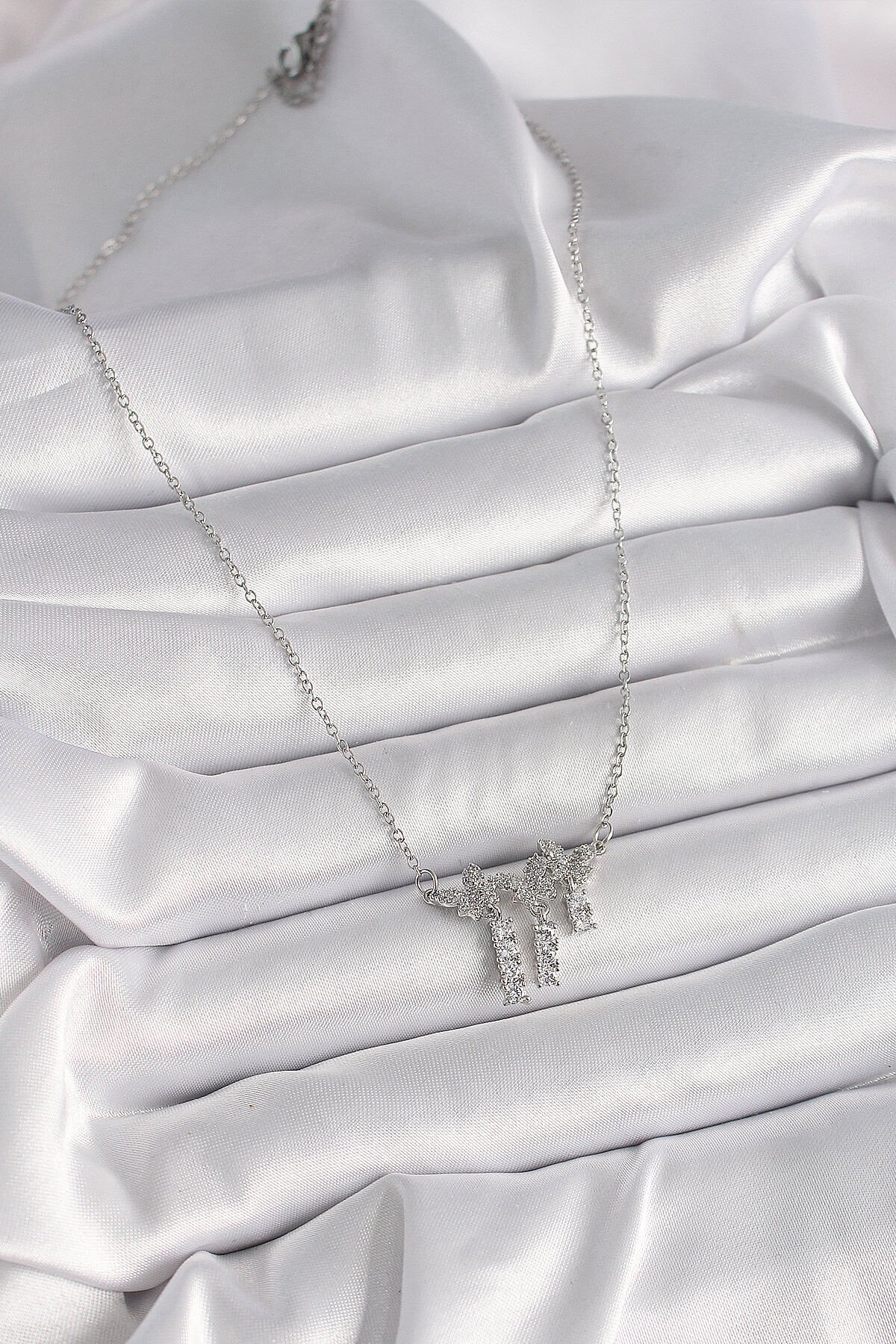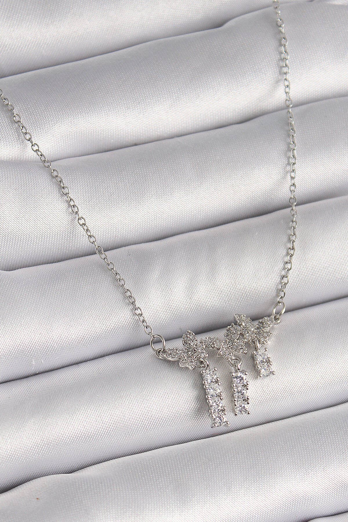 316L Çelik Gümüş Renk Zincir Zirkon Taşlı Kelebek Model Sallantı Detay Kadın Kolye