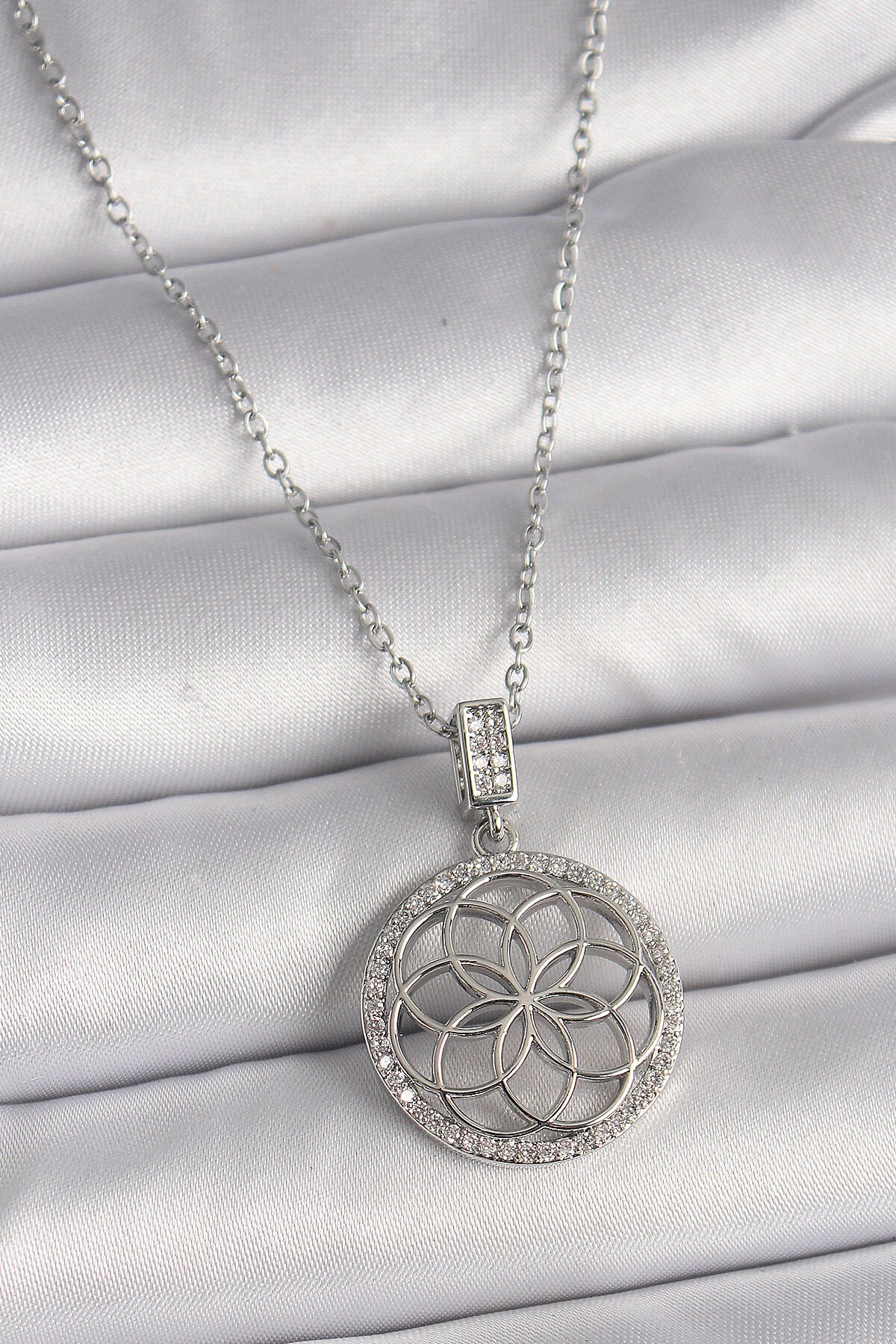316L Çelik Gümüş Renk Zincir Zirkon Taşlı Lotus Model Kadın Kolye e_BKO9731