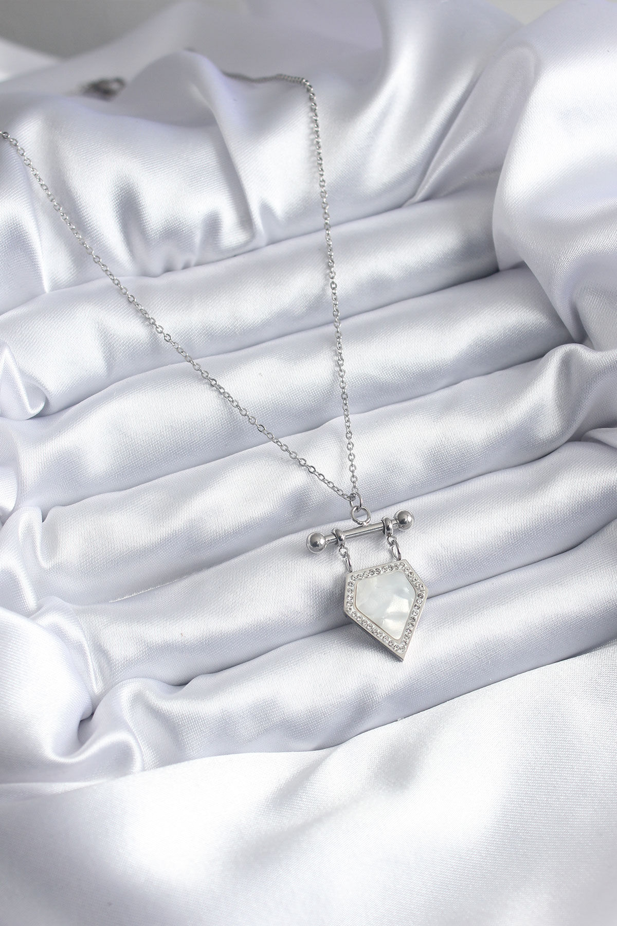 316L Çelik Gümüş Renk Zirkon Taş Detay Kadın Kolye e_BKO7896