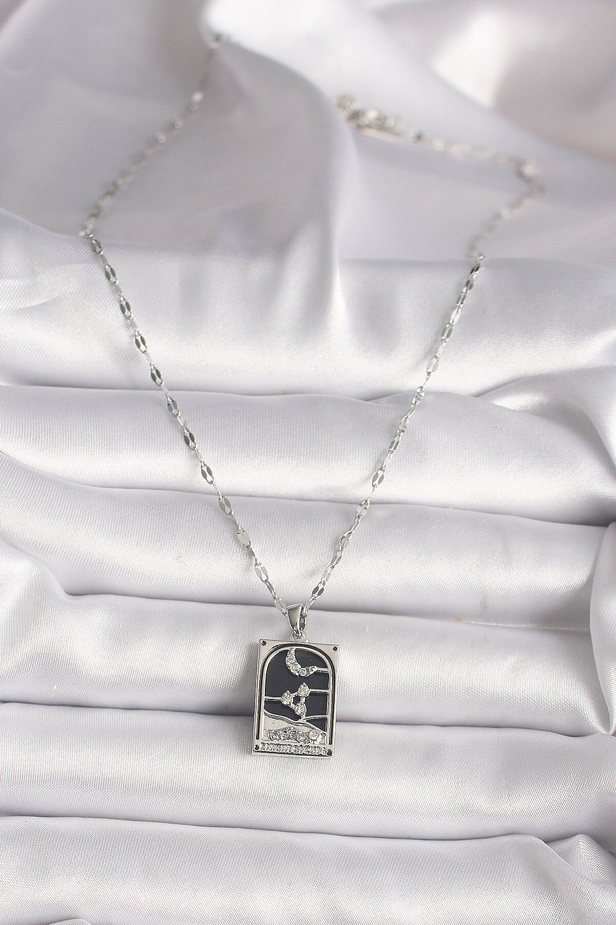 316L Çelik Gümüş Renk Zirkon Taşlı Ay Figürlü Taror Model Kadın Kolye