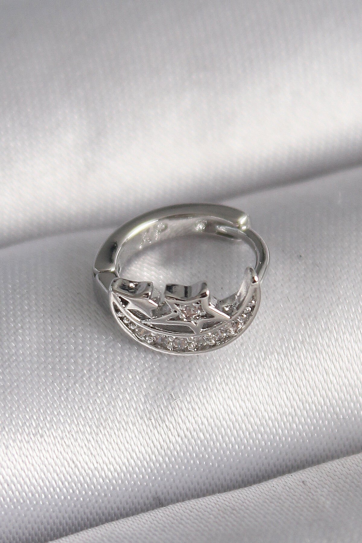 316L Çelik Gümüş Renk Zirkon Taşlı Ay Yıldız Model Tragus Piercing