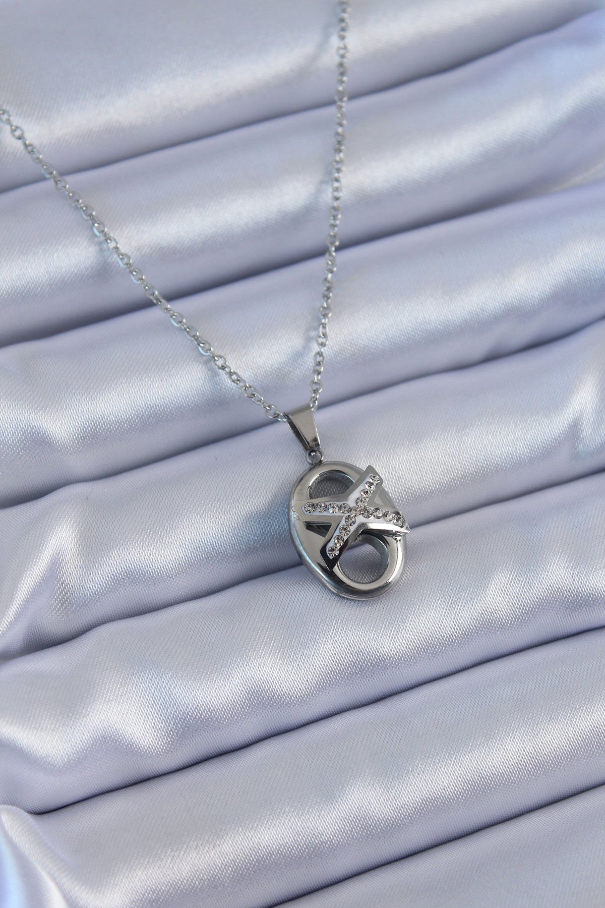 316L Çelik Gümüş Renk Zirkon Taşlı Kadın Kolye