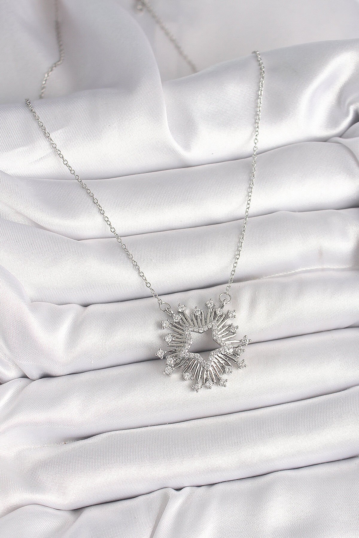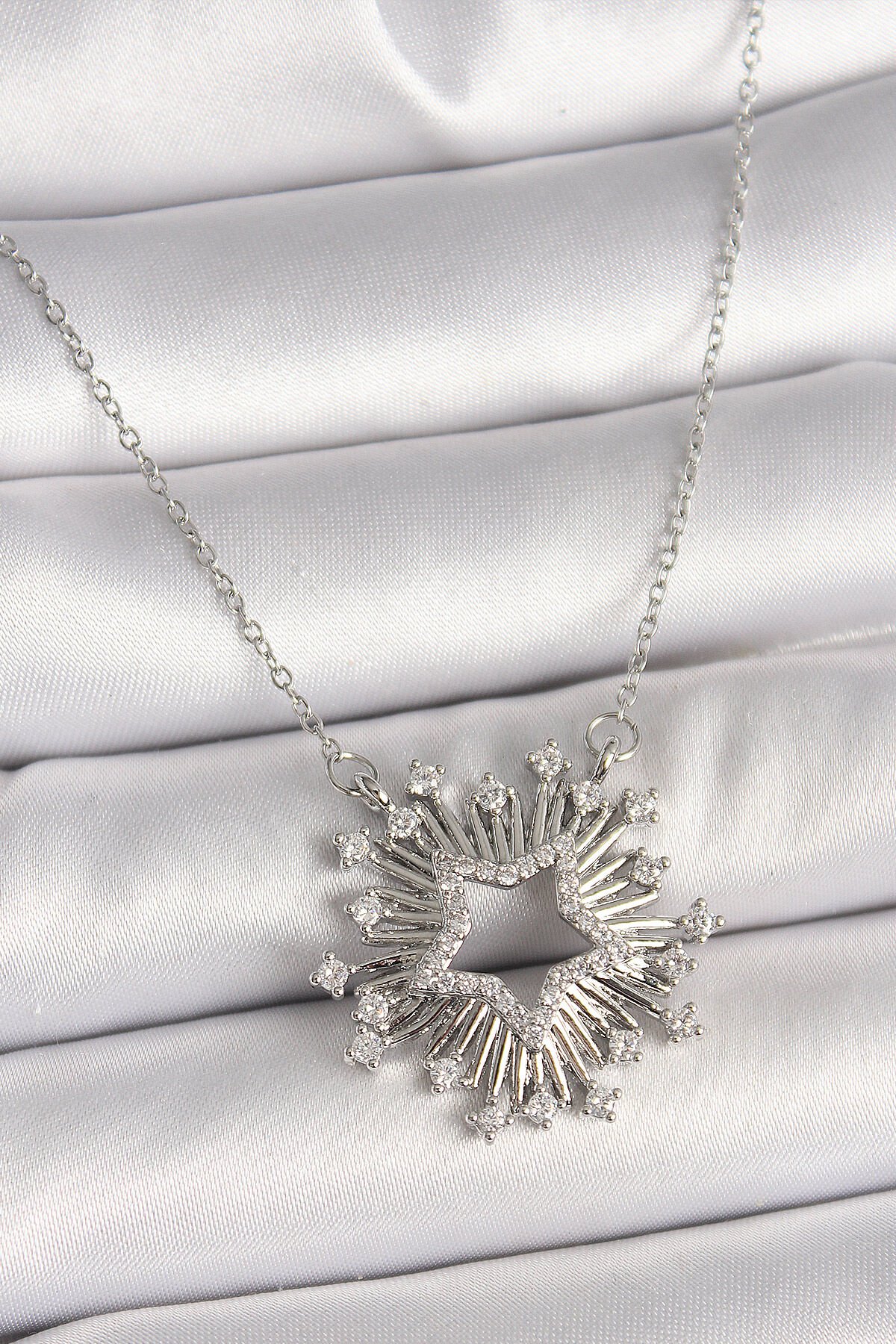 316L Çelik Gümüş Renk Zirkon Taşlı Yıldız Model Kadın Kolye