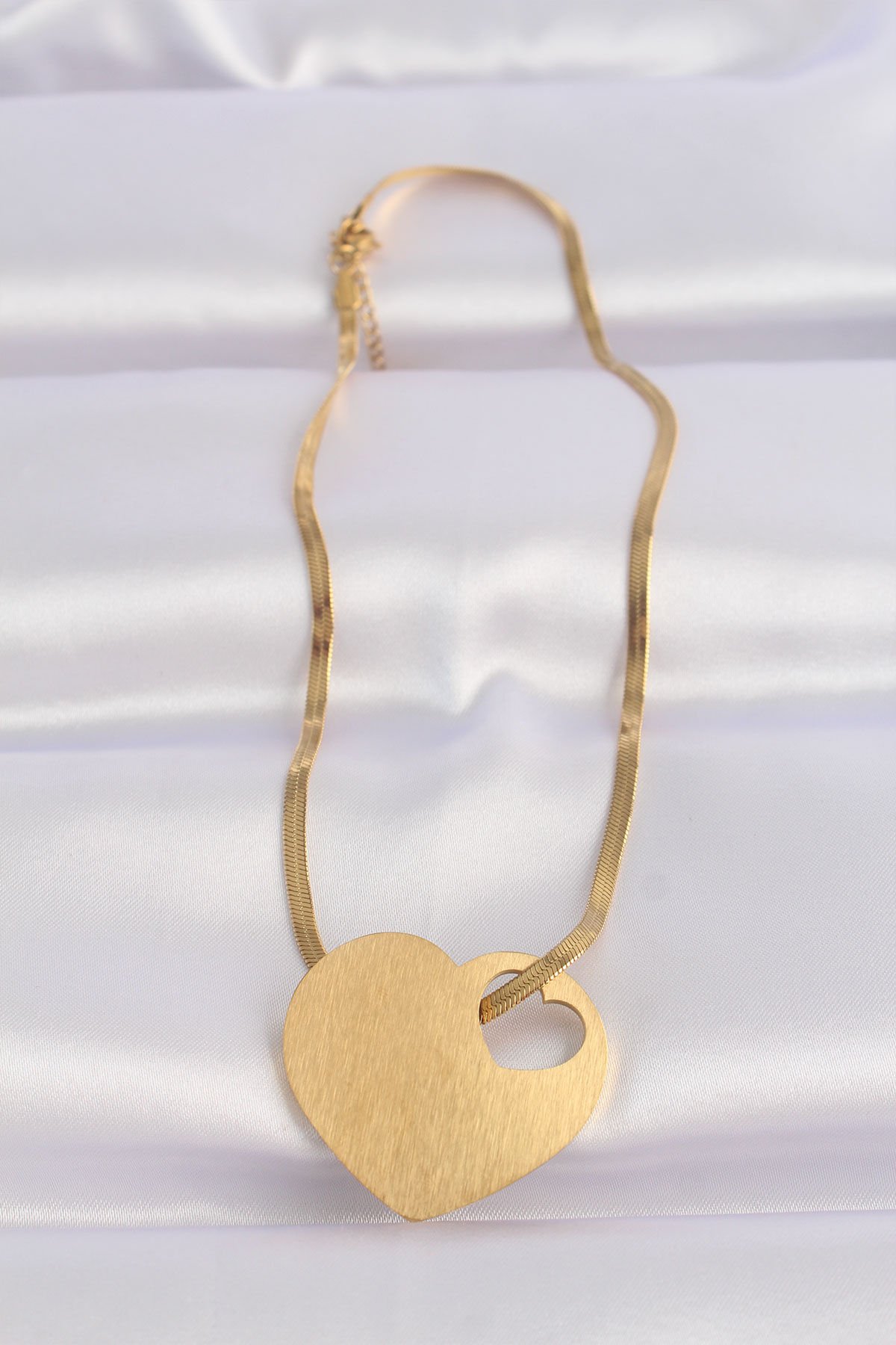 316L Çelik İtalyan Zincir Altın Renk Düz Plaka Kalp Kolye e_BKO8637